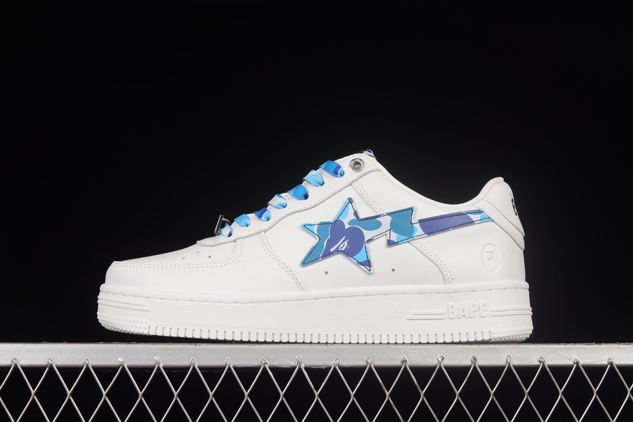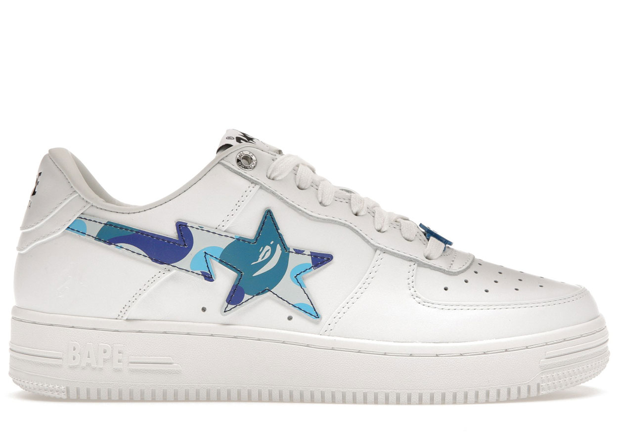 The A Bathing Ape BAPE Sta ABC Camo White Blue 2022 features a classic BAPE camouflage motif that shapes its design. The shoe also has the company’s signature white and blue hues.