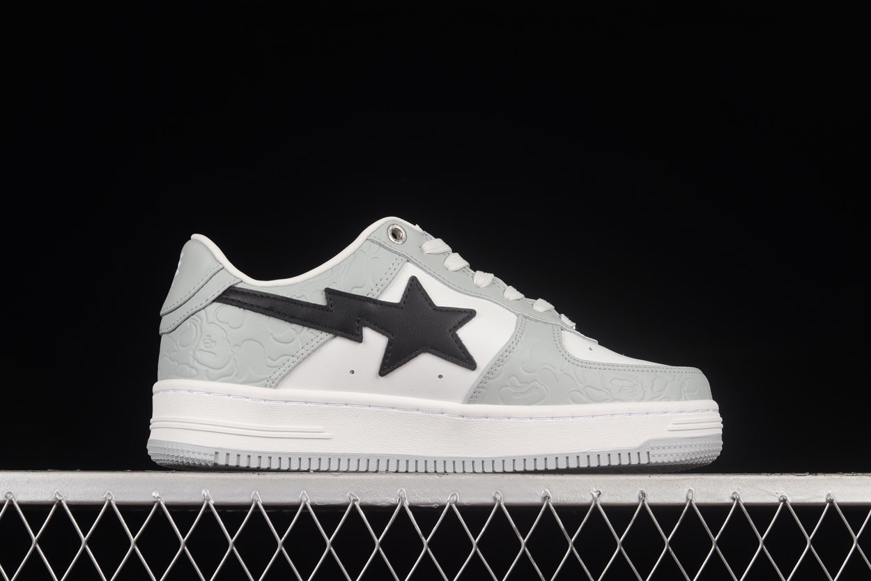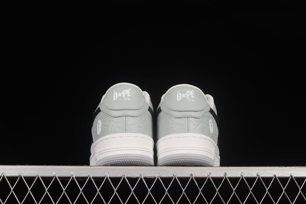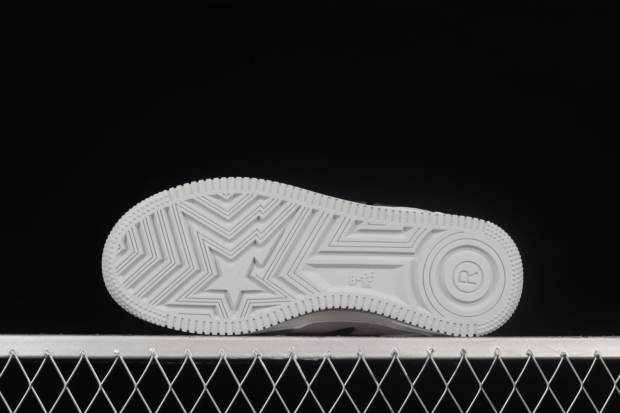 The A Bathing Ape Bape Sta LOW Grey Black is one of BAPE’s most well-known sneaker designs, drawing inspiration from the classic Nike Air Force 1 silhouette.