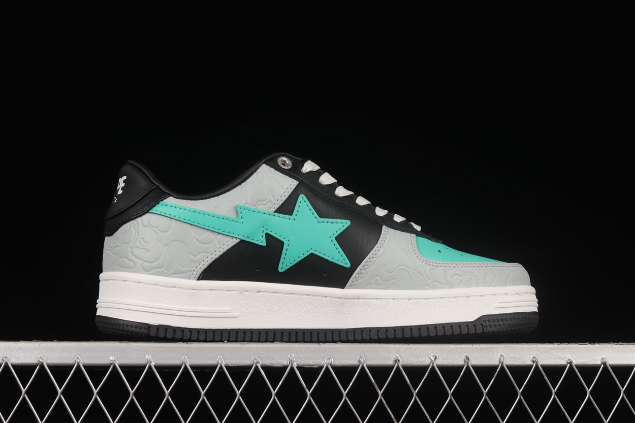 First dropped in 2000, BAPE STA became an instant icon as the signature footwear of A BATHING APE. The star-shaped “STA” logo sweeping along the sides and the vibrant collection of colourways and designs has been a defining feature of Japanese hip-hop streetwear over the last 20 years. The shoes are crafted with coloured leather, shiny elements, textured foam rubber soles, in different colourways to suit your personal flavour of outdoor adventure. These Bape Stas feature a green star logo, surround by grey paneling over a green black base. Brought together by a black sole.