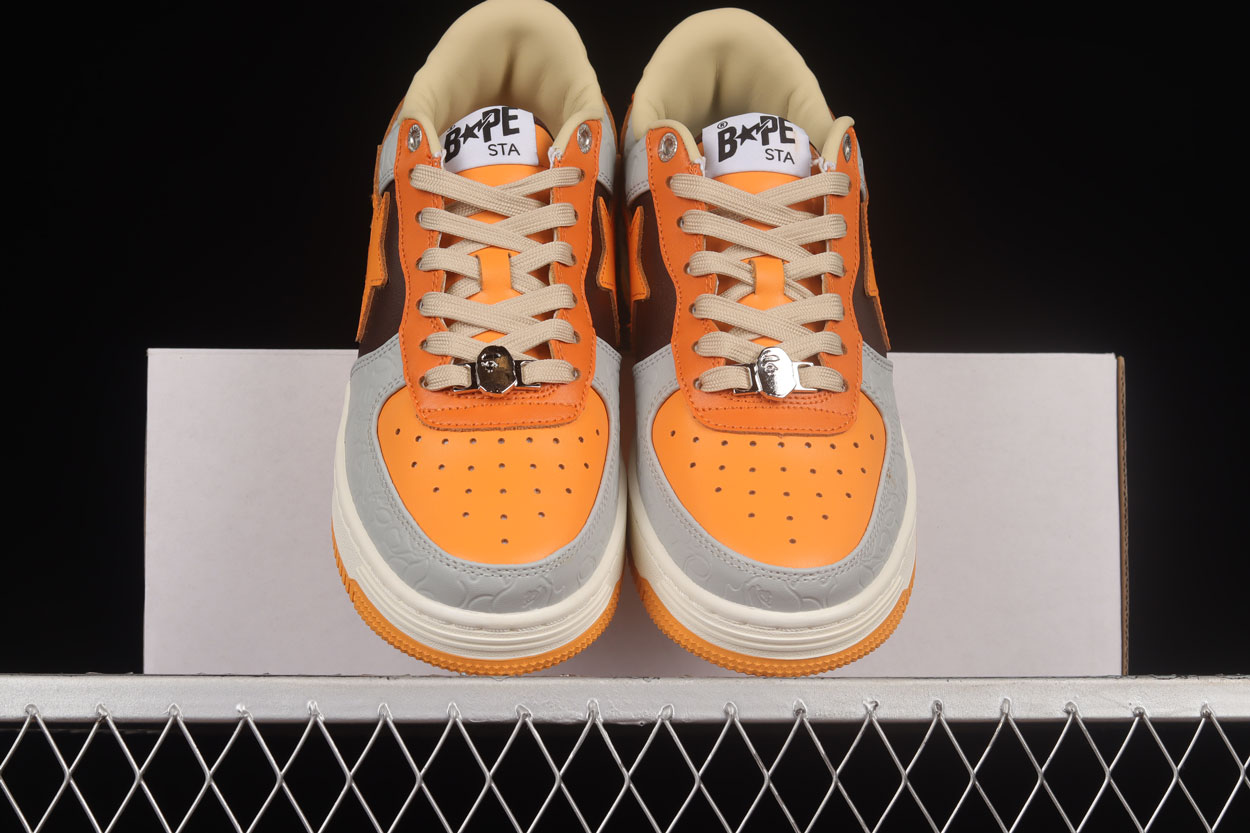 First dropped in 2000, BAPE STA became an instant icon as the signature footwear of A BATHING APE. The star-shaped “STA” logo sweeping along the sides and the vibrant collection of colourways and designs has been a defining feature of Japanese hip-hop streetwear over the last 20 years. The shoes are crafted with coloured leather, shiny elements, textured foam rubber soles, in different colourways to suit your personal flavour of outdoor adventure. These Bape Stas feature an orange star logo, surround by grey paneling over an orange brown base. Brought together by a orange sole.