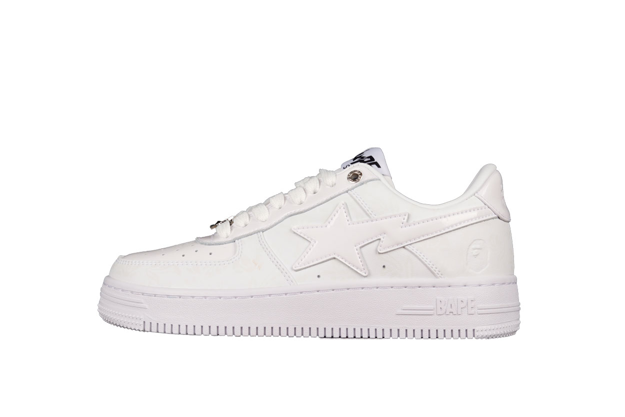 First dropped in 2000, BAPE STA became an instant icon as the signature footwear of A BATHING APE. The star-shaped “STA” logo sweeping along the sides and the vibrant collection of colourways and designs has been a defining feature of Japanese hip-hop streetwear over the last 20 years. The shoes are crafted with coloured leather, shiny elements, textured foam rubber soles, in different colourways to suit your personal flavour of outdoor adventure. These Bape Stas feature a white star logo, surround by white paneling over a white base. Brought together by a white sole.