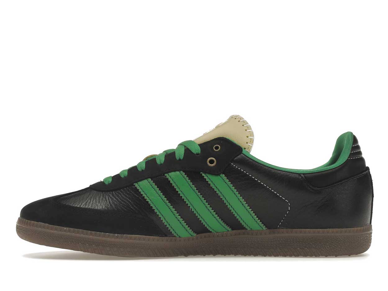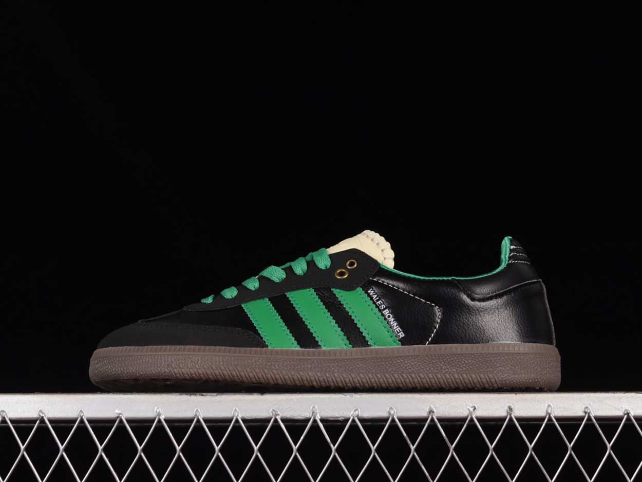 The adidas Samba Wales Bonner Black is a sleek and stylish sneaker that combines classic design with modern materials. The upper is made of premium black leather, with contrasting white stitching and a textured rubber sole. The shoe features a unique lacing system that allows for a secure and comfortable fit, while the iconic three stripes on the side add a touch of sporty flair. The Samba Wales Bonner Black was released on March 26, 2021, and retails for $180. This versatile sneaker is perfect for everyday wear, whether you’re hitting the streets or the gym. With its high-quality construction and timeless design, the adidas Samba Wales Bonner Black is a must-have for any sneakerhead.Read Less