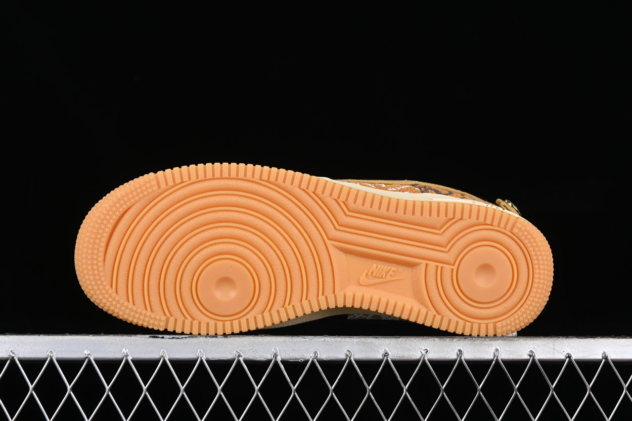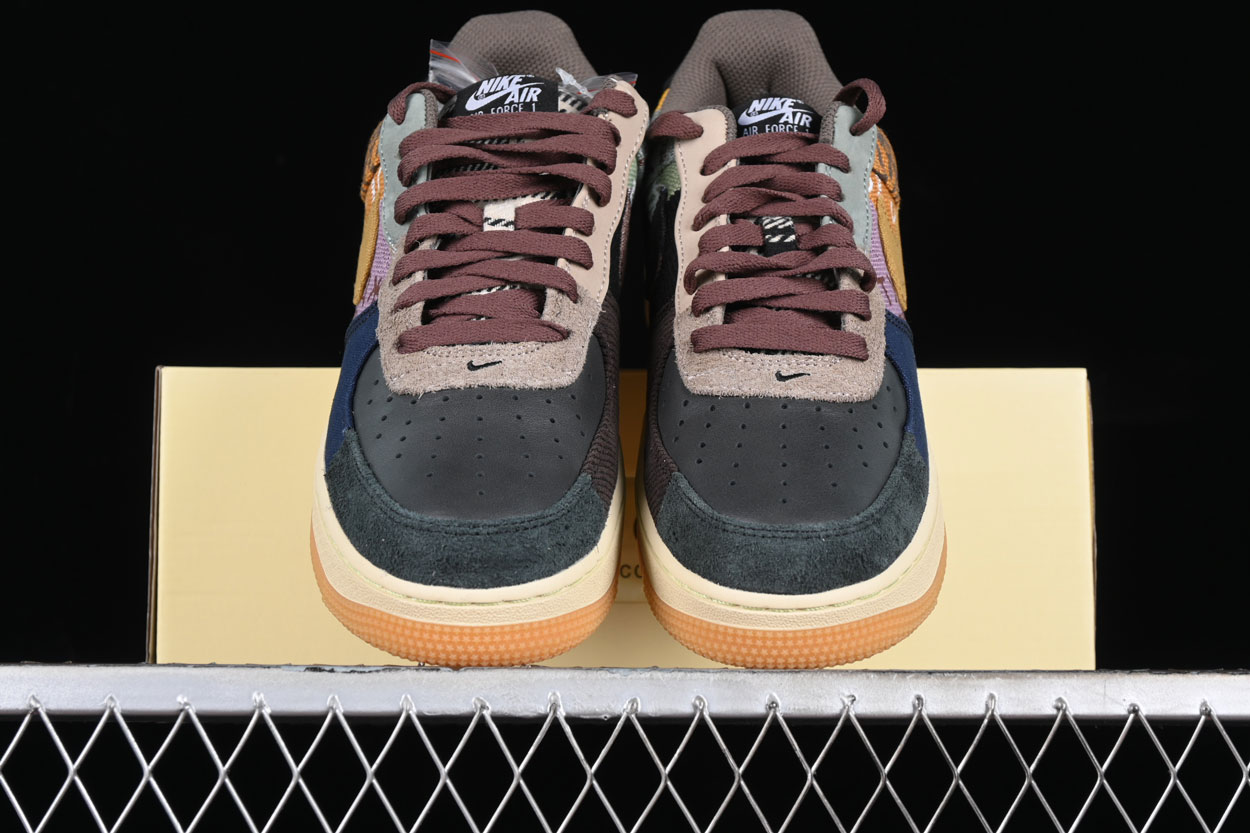 This Travis AF1 features a patchwork upper comprised of camouflage, corduroy, duck canvas, flannel, leather, suede and wool. Unmistakable Cactus Jack insignias are placed throughout the silhouette. A sail midsole and gum rubber outsole completes the design.