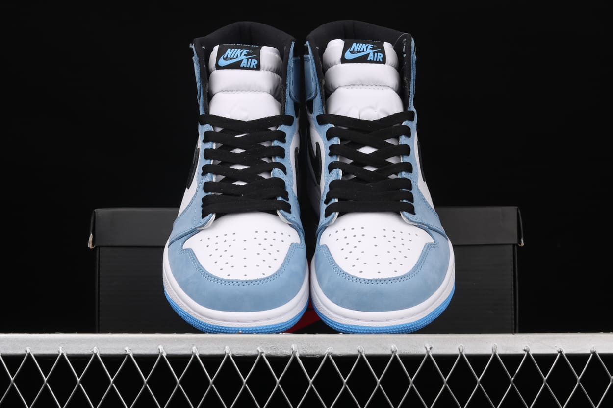 The upper of the Air Jordan 1 High University Blue is composed of a white and black tumbled leather upper with University Blue Durabuck overlays. Following traditional Jordan 1 detailing, a Nike Air woven label is located on the tongue and an Air Jordan Wings Logo is printed on the ankle. A white midsole and University Blue outsole complete rejuvenated classic.