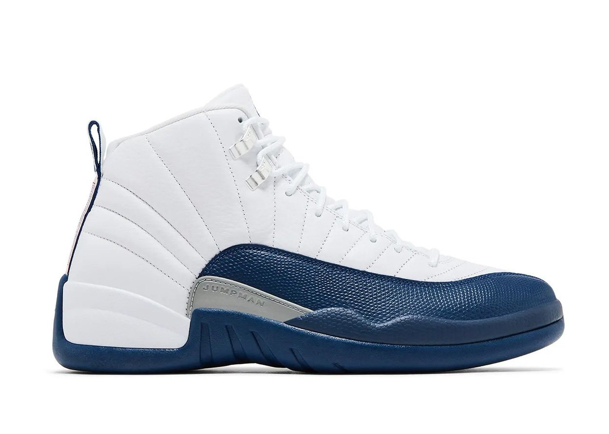 Returning for the first time since 2016, the Air Jordan 12 French Blue makes its comeback on August 16, 2025, staying true to its original 2004 design. The upper features white tumbled leather with radiating stitched lines, complemented by a textured French Blue mudguard. Metallic silver eyelets and side plates add subtle contrast, while Varsity Red accents on the heel tab and tongue branding complete the look.