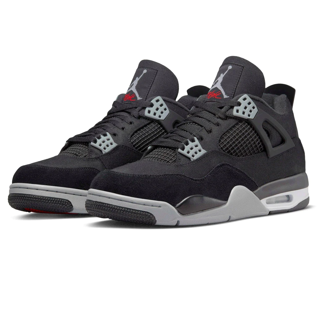 The Air Jordan 4 Retro SE Black Canvas arrives in a neutral color scheming with contrasting touches of crimson red.