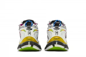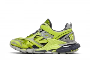 The Balenciaga Track Black is made of mesh and nylon material. The sneaker comes in 100% black color at the upper part and white contrast extra laces. The size of the shoe is written at the edge of the toe, ‘Track’ branded at the back, and ‘Balenciaga’ embossed at the tongue and exterior. It features a sole that has been designed with an augmented back.