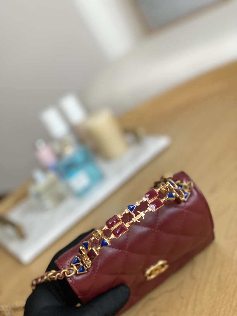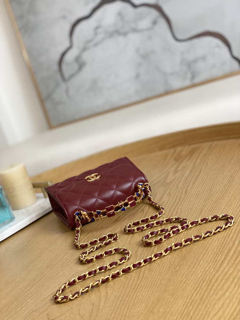 CN AP2945 Clutch with Chain Lambskin Wine Red Gold