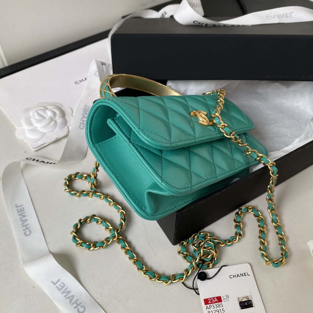 chanel ap3385 woc flap phone holder with chain lambskin green gold 001 luxibags.ru .jpg