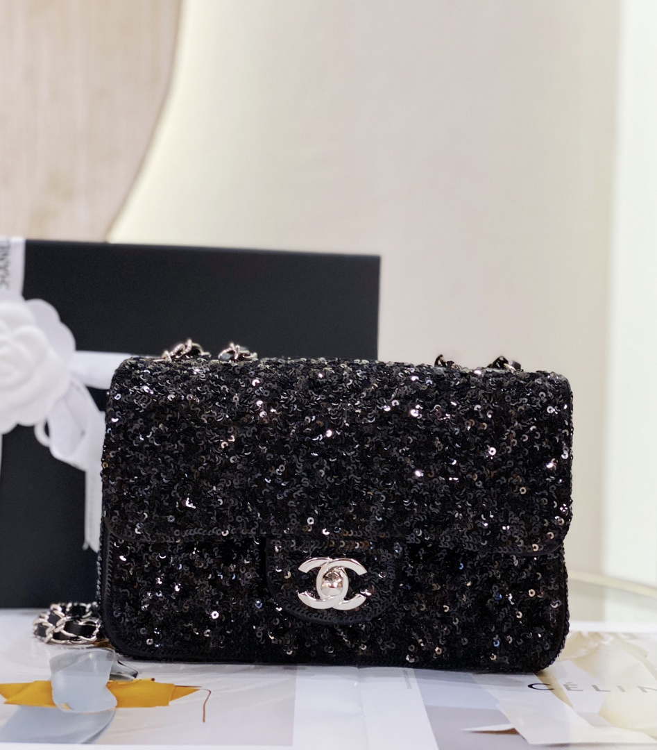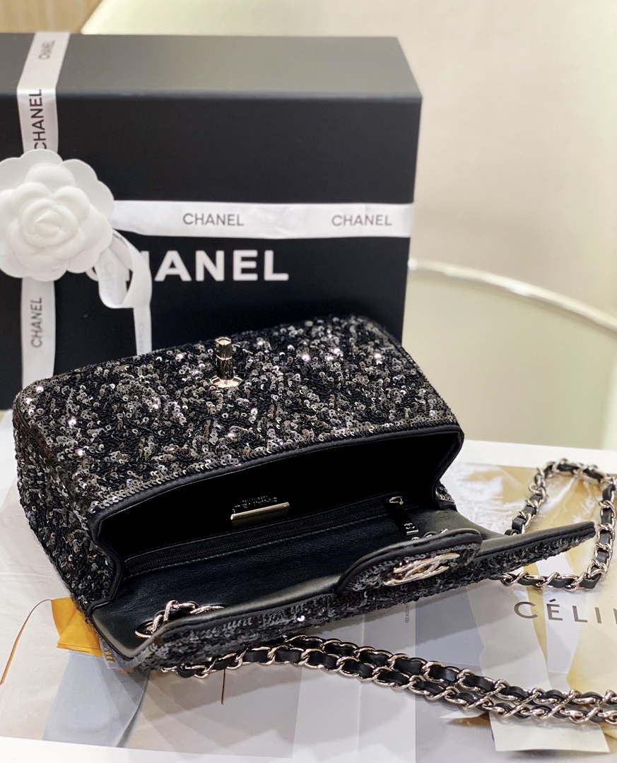 Flap Bags of the 2023SS Métiers d’art collection: CN 23P Flap Handbag, lambskin, gold-tone, silver-tone & ruthenium-finish metal, black on the CN official website