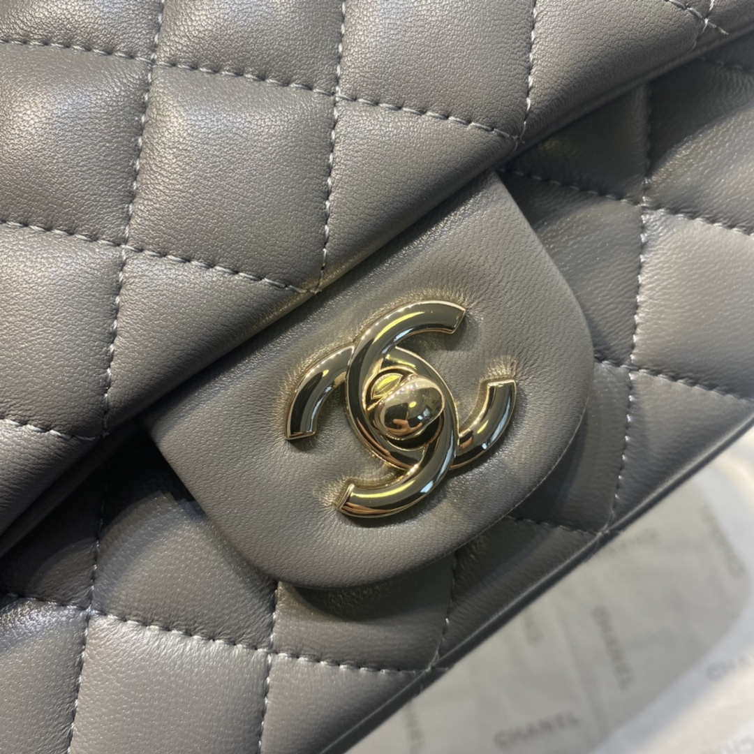 CN AS2431 Mini Flap Lambskin Bag with top Handle Gray Bright gold