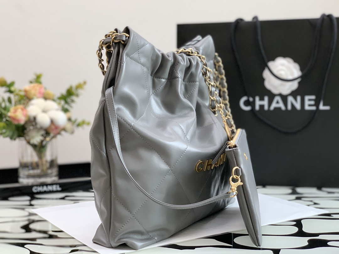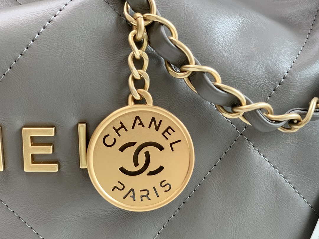 CN AS3260 22 Small Handbag Metallic Calfskin Gray Metal With logo Gold
