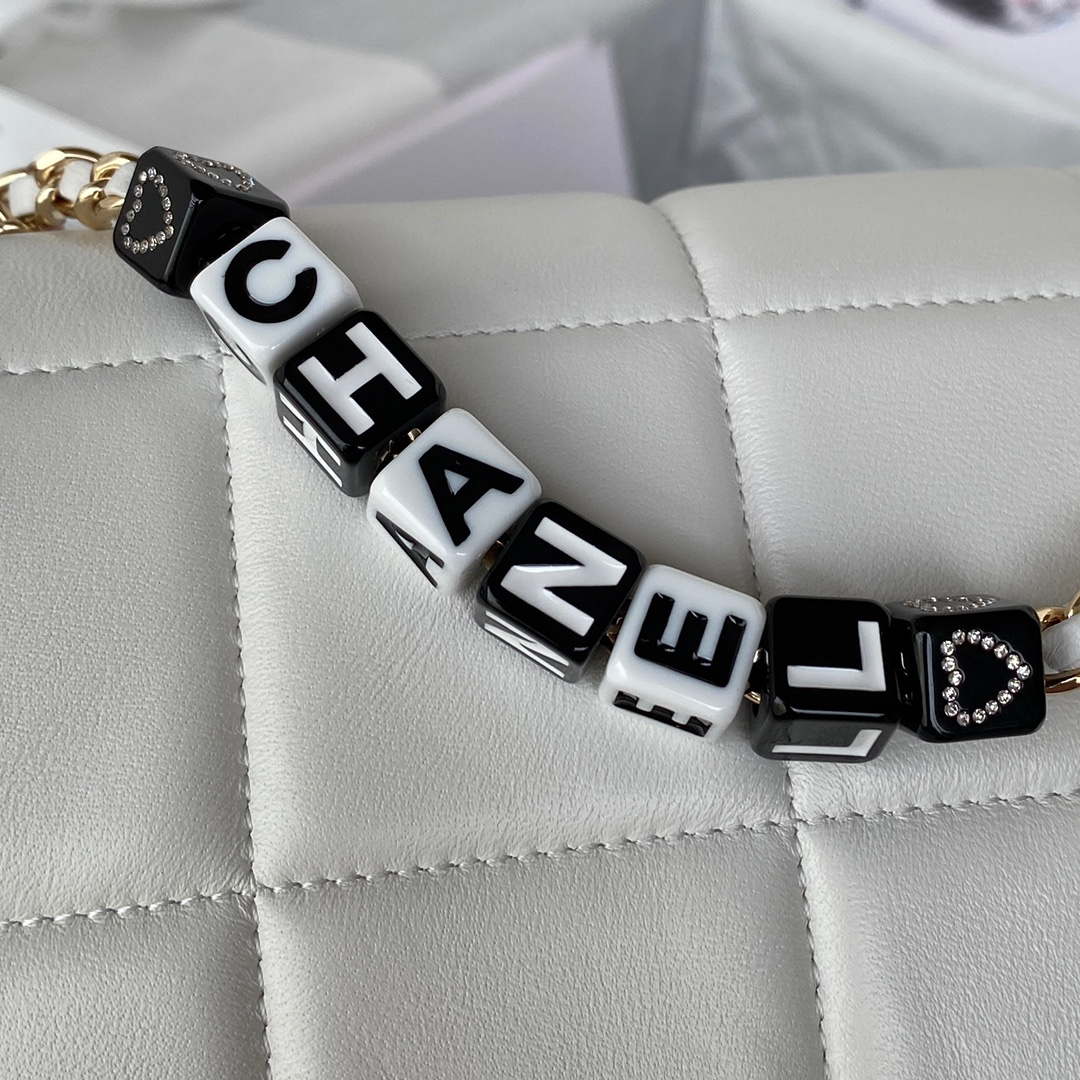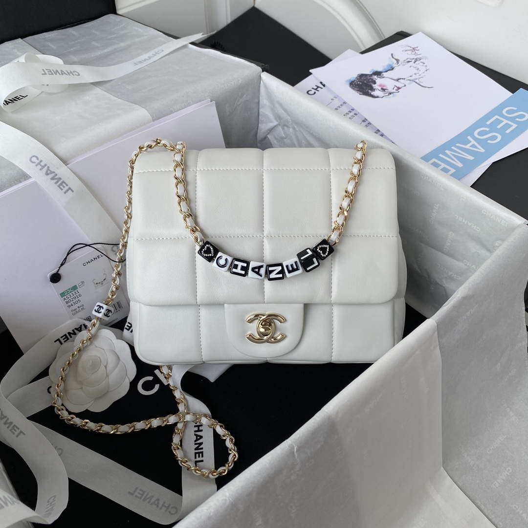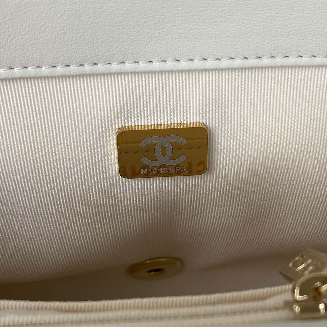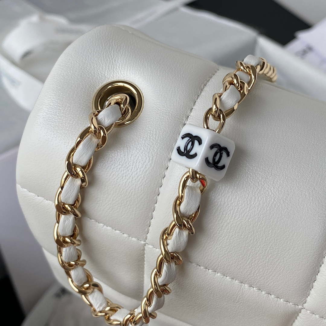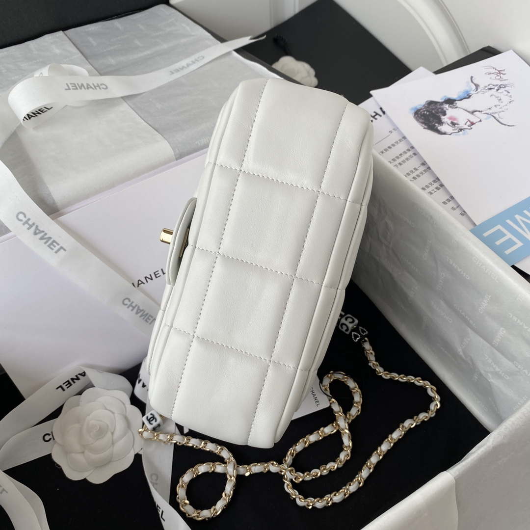 CN AS3331 Small Flap 19cm Bag White Lambskin Gold