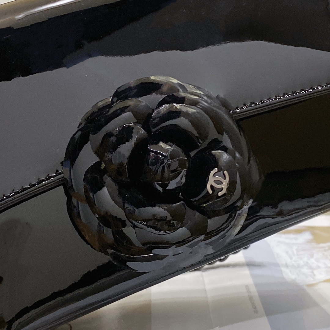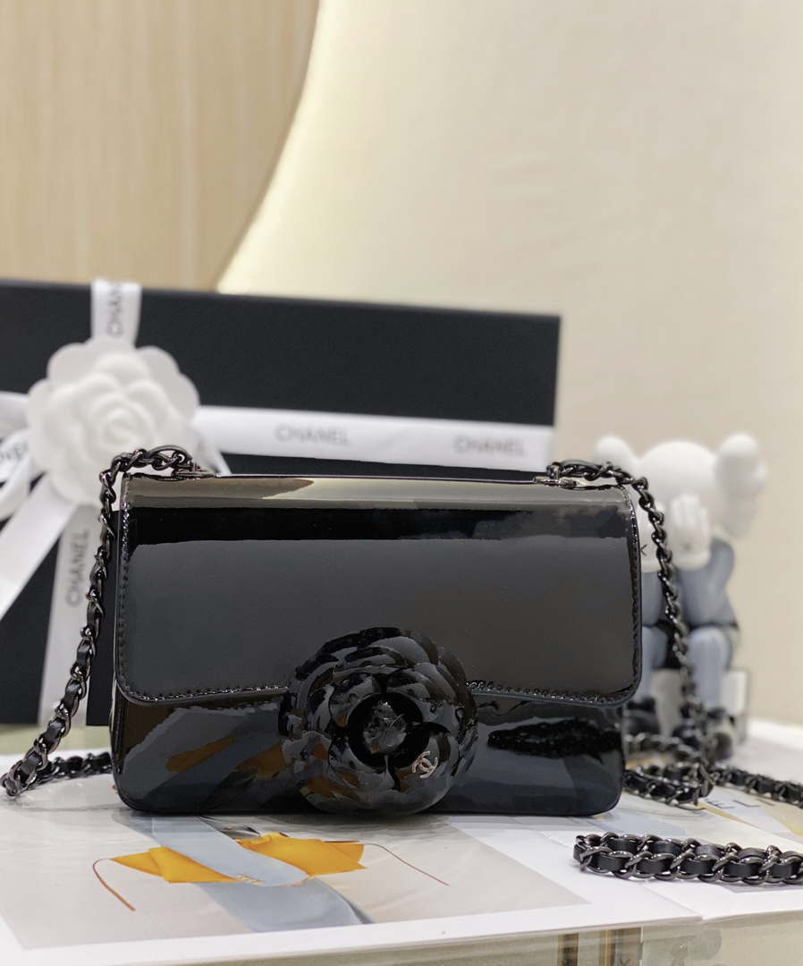 CN AS3356 Mini Flap 18cm Patent leather Camellia Black