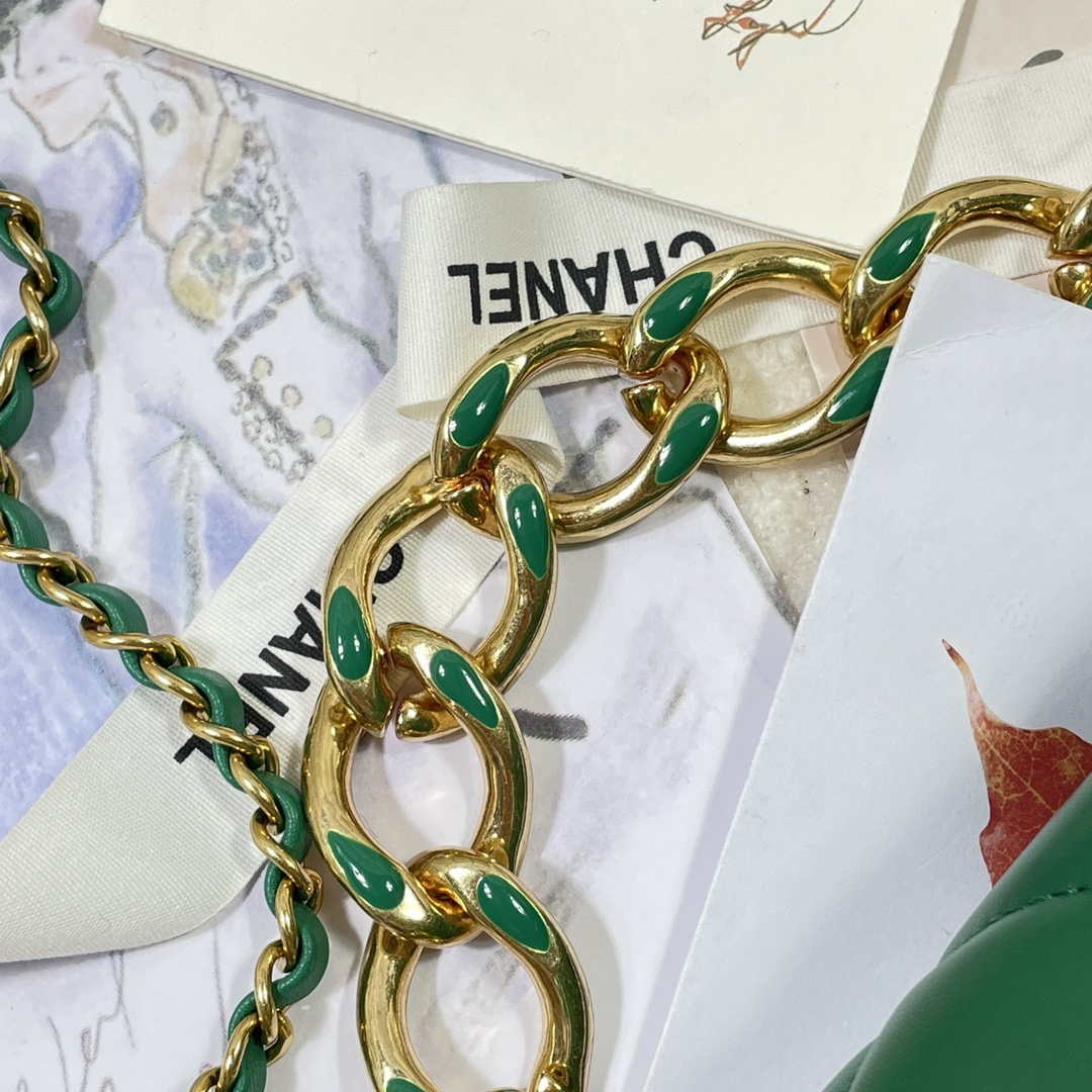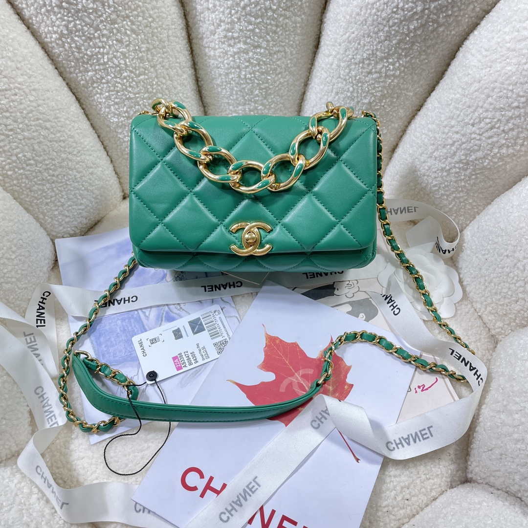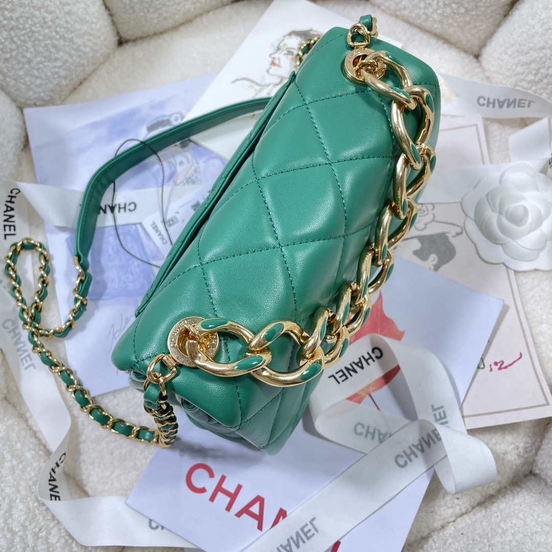 CN AS3366 Flap Bag 20cm Lambskin Green