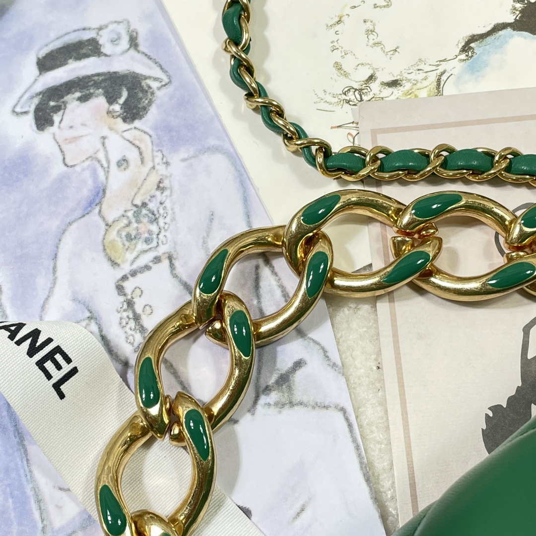 CN AS3367 Large Flap Bag 23cm Lambskin Green