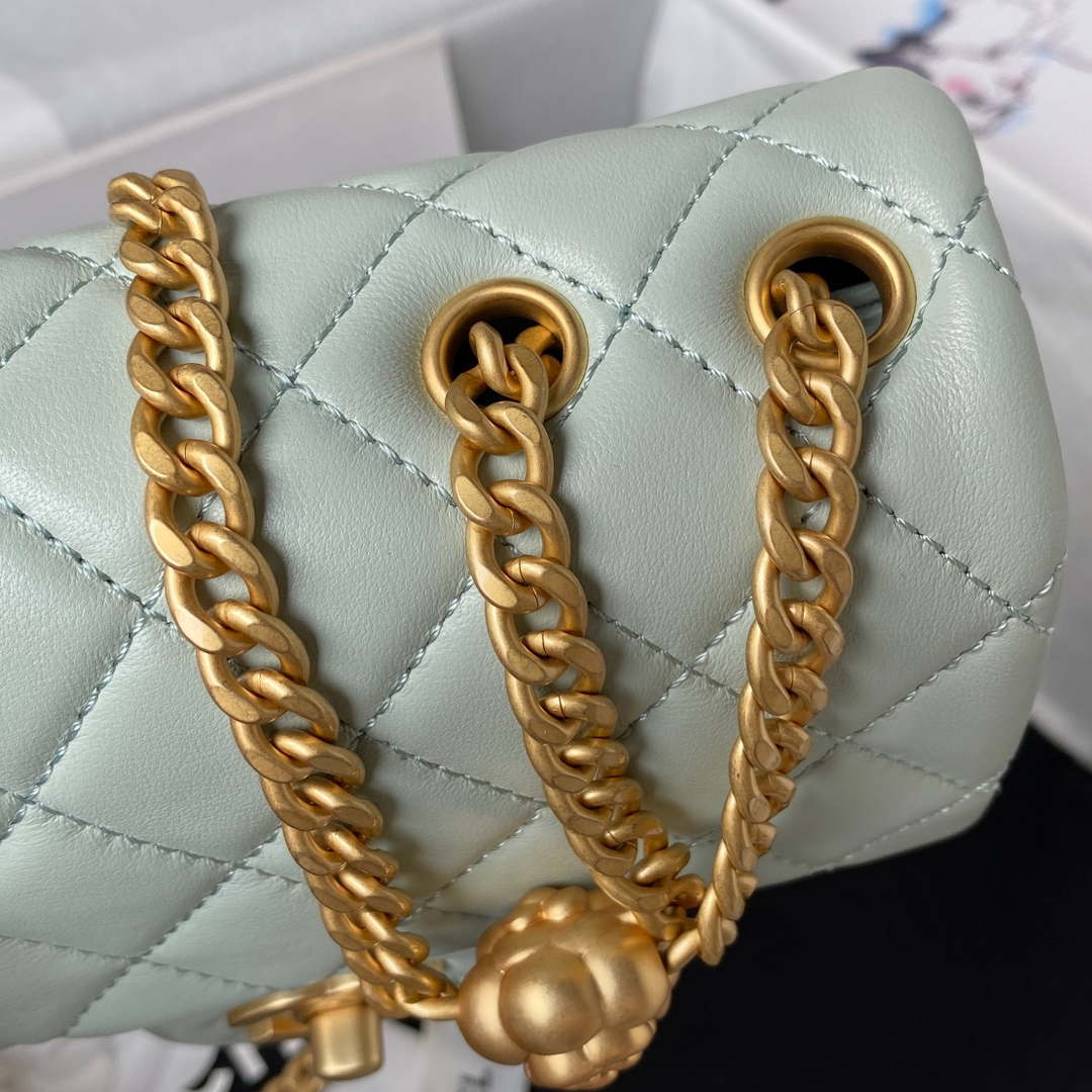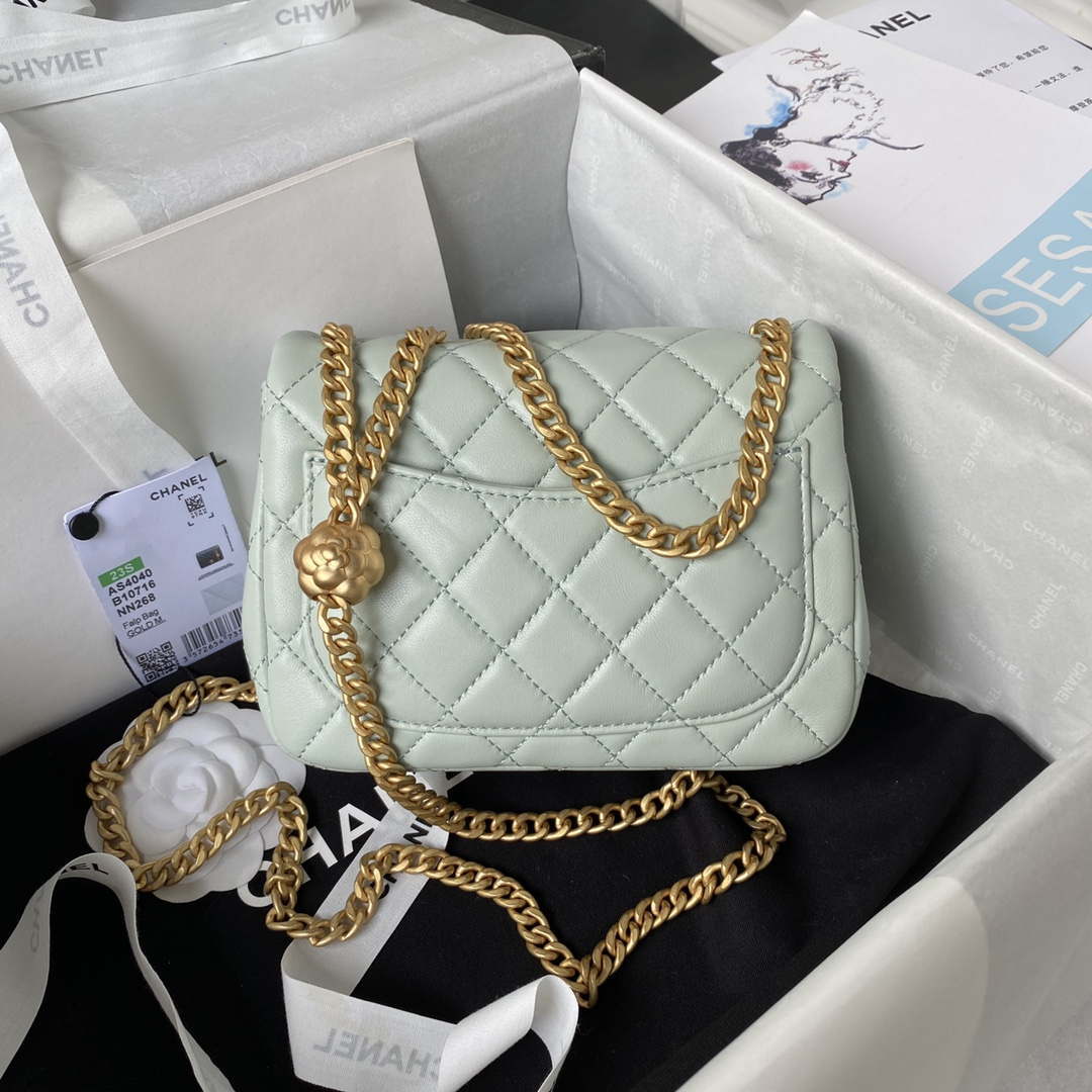 CN AS4040 Mini Flap Classic Bag 18 Woc Camellia Lambskin Green Gray