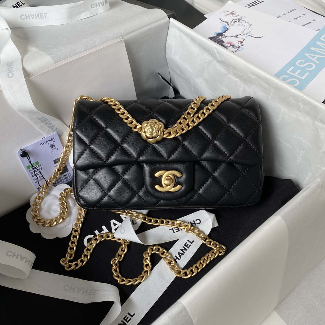 CN AS4041 Flap Classic Bag CF Camellia Lambskin Black Gold