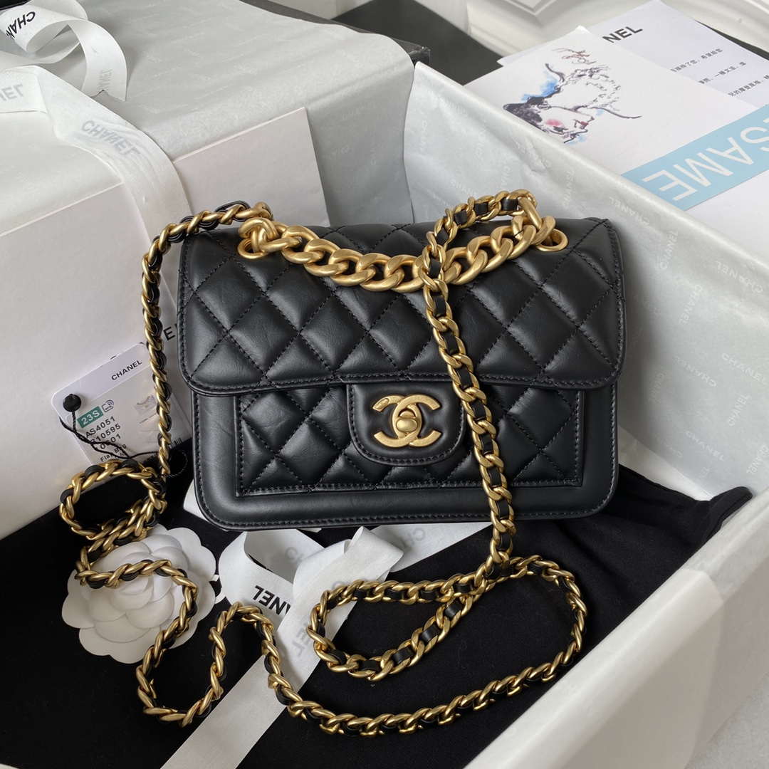 CN AS4051 Flap Bag Lambskin Gold Metal Black