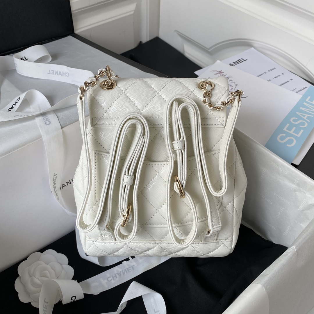CN AS4058 Backpack Grained Shiny Calfskin & Gold-Tone Metal White