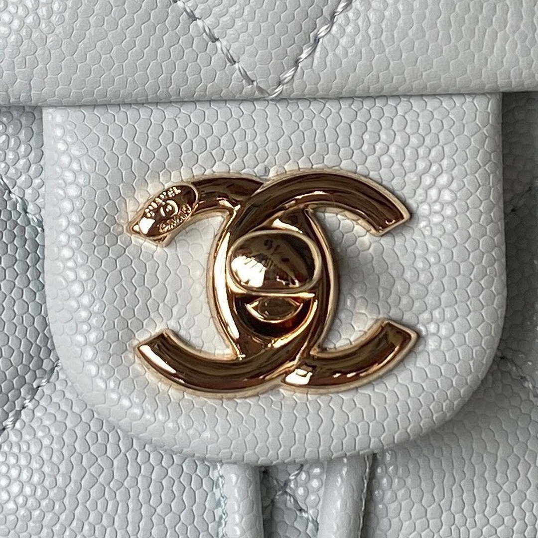 CN AS4059 Large Backpack Grained Shiny Calfskin & Gold-Tone Metal Light Blue