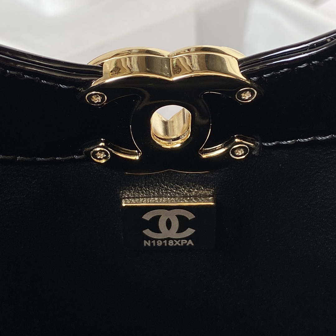 Hobo Bags of the Spring-Summer 2023 collection: CN 22 Mini Handbag, shiny calfskin & gold-tone metal , black on the CN official website