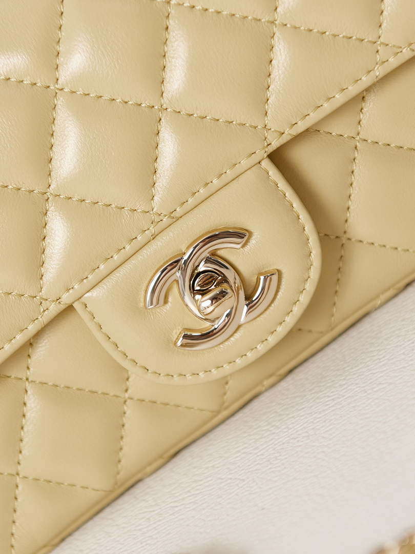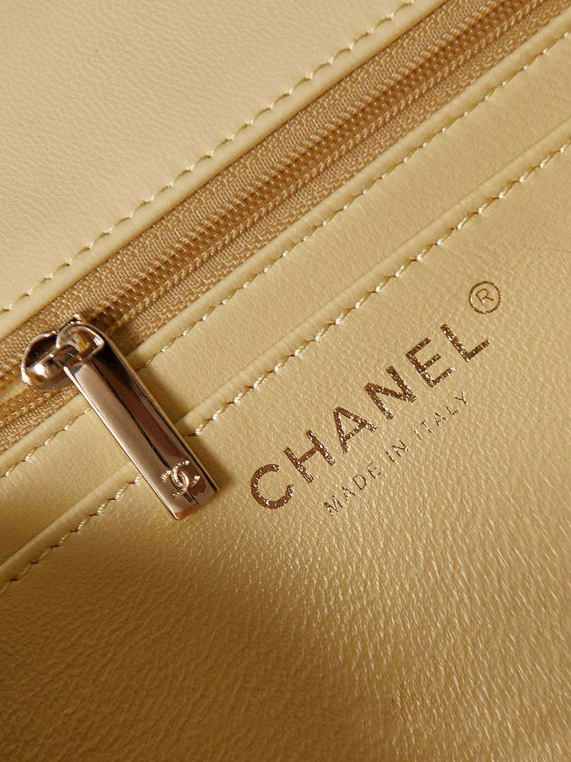 CN AS4141 Camellia Embossed Flap With top Handle Bag Beige