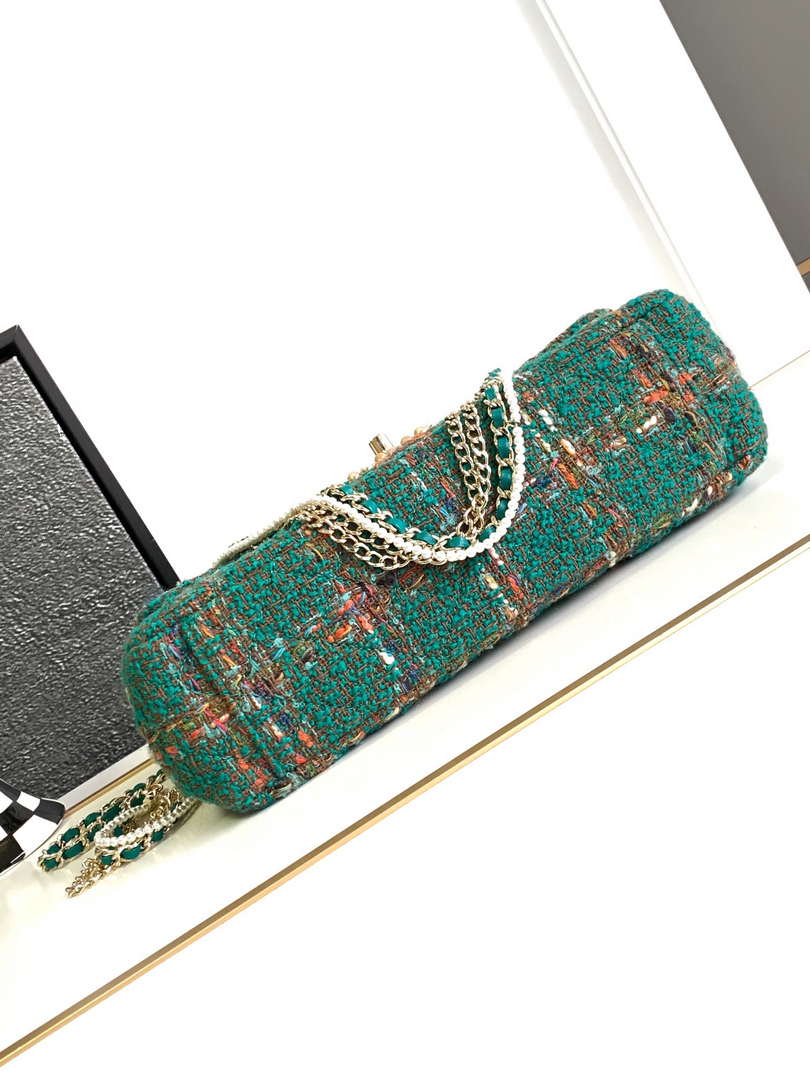 CN AS4221 large Flap Bag with top Handle Wool and Silk Tweed Glass and Wooden Pearls