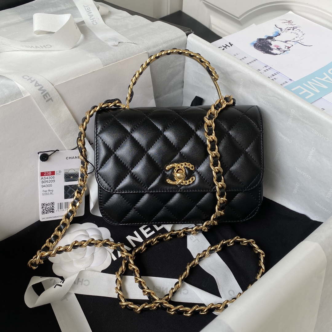 CN AS4306 Small Flap bag with Handle Lambskin Black