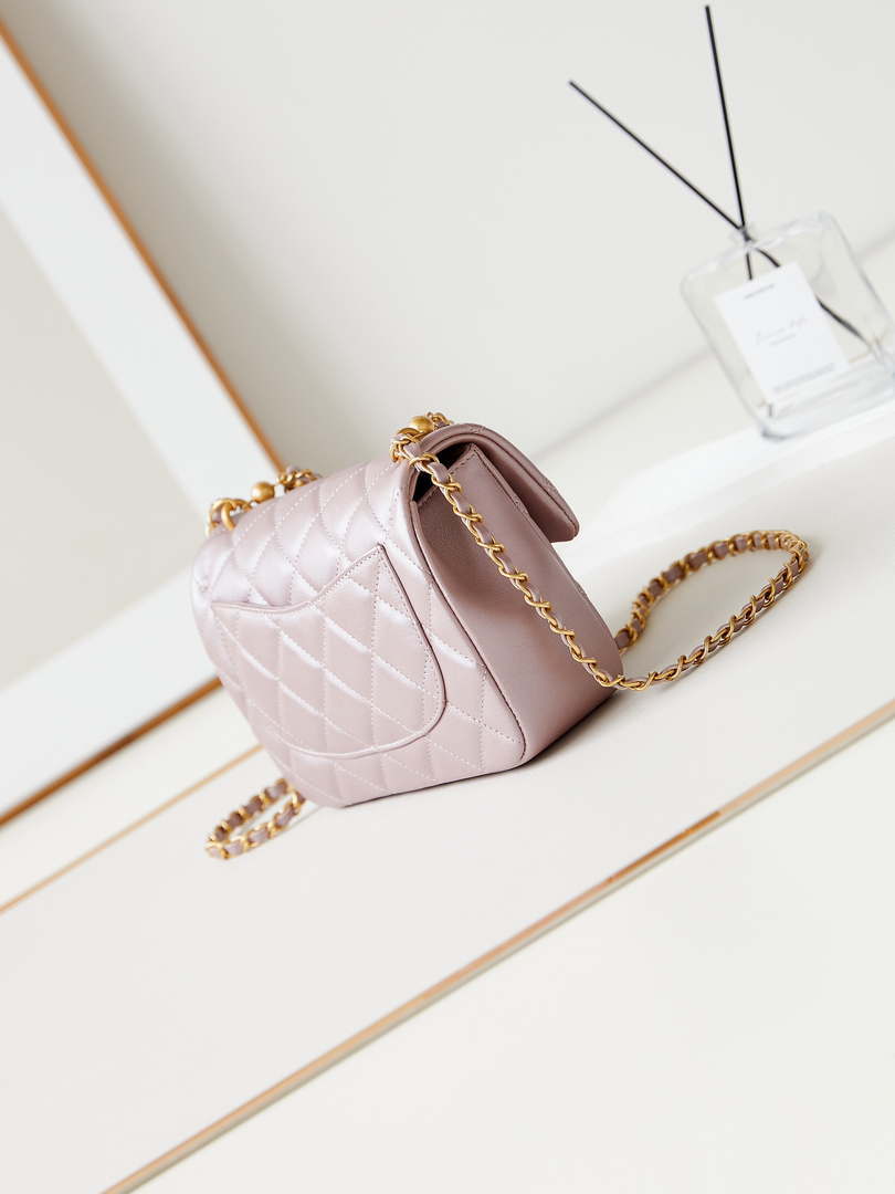 CN AS4384 Mini Flap Bag Pearly Lambskin Imitation Pearls & Gold-Tone Metal Pink