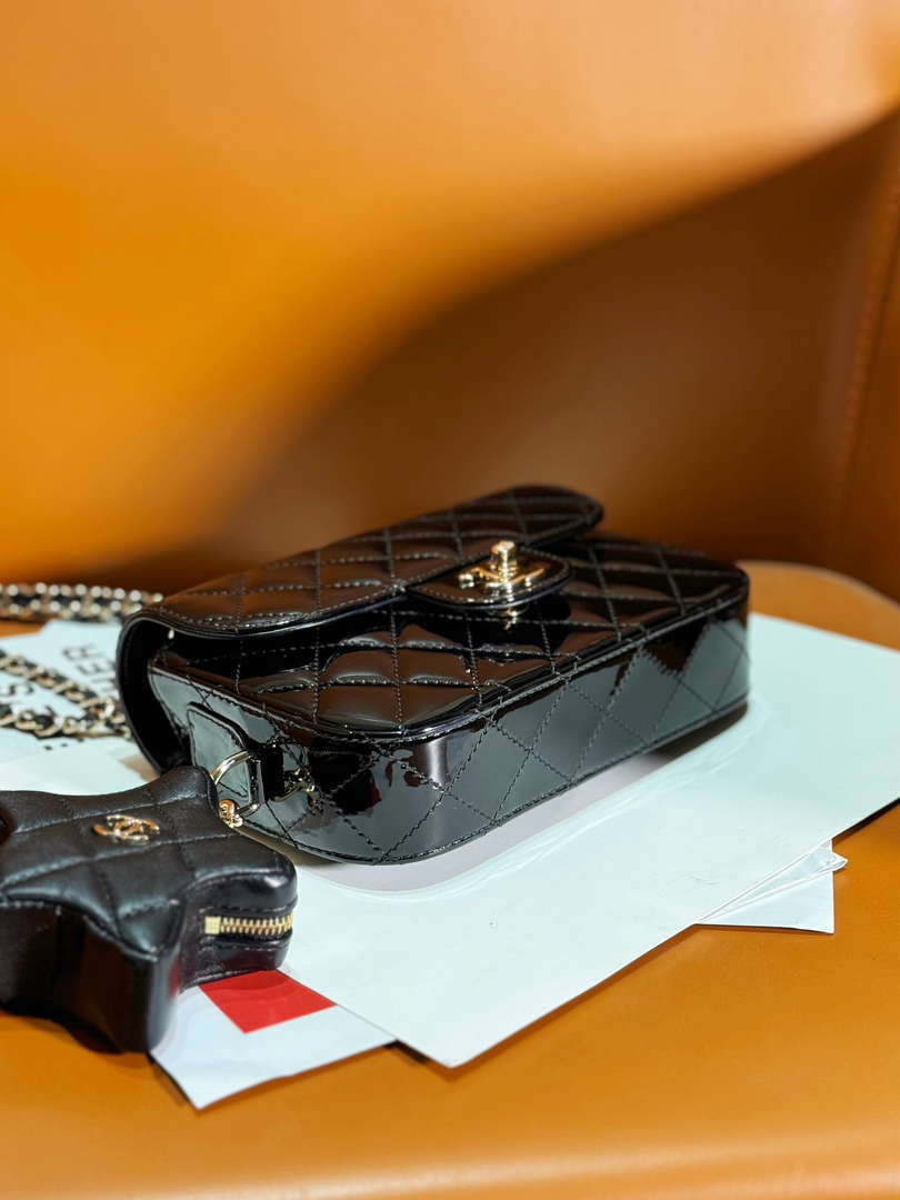 CN AS4646 MINI FLAP BAG & STAR COIN PURSE Mirror Calfskin Metallic Calfskin & Gold-Tone Metal Black