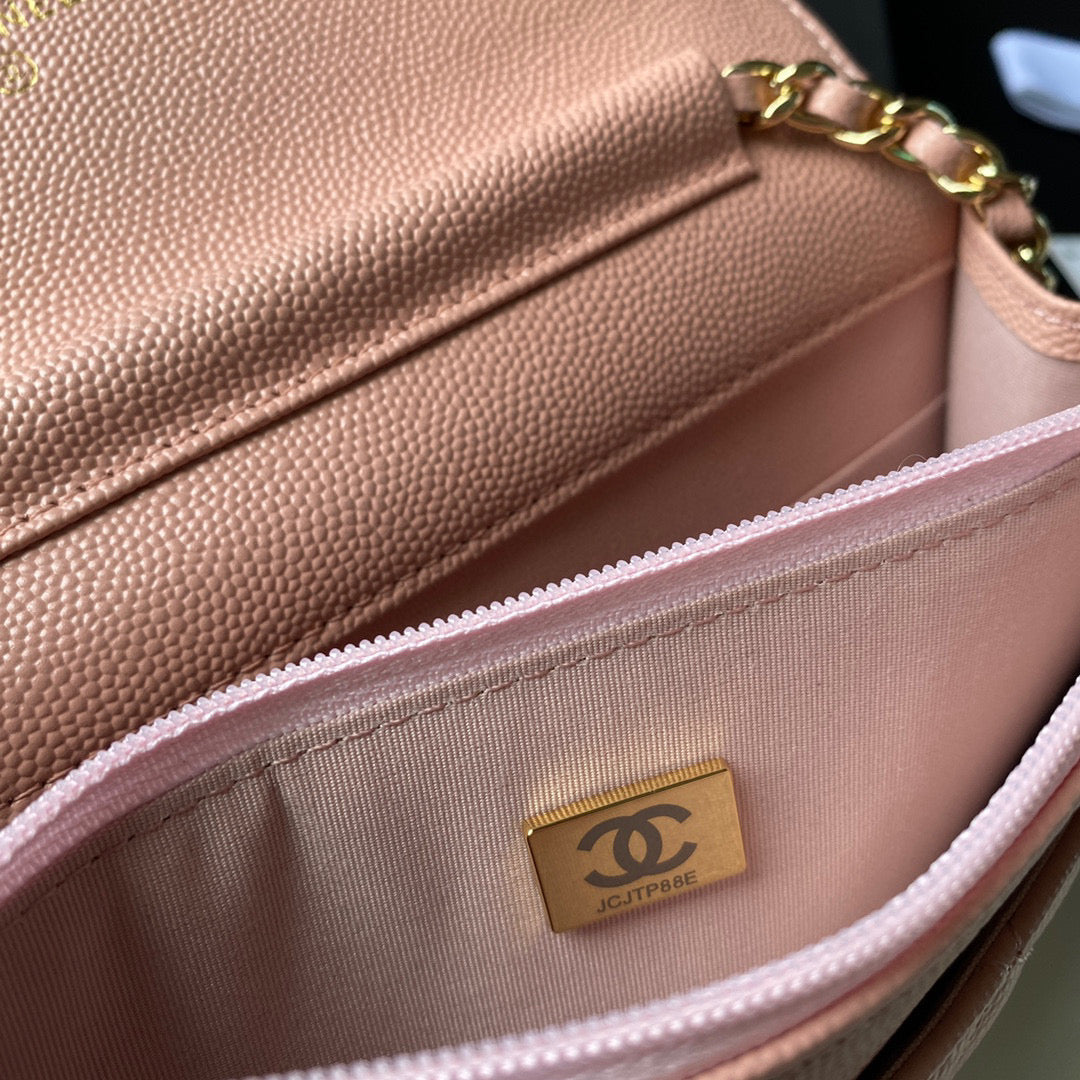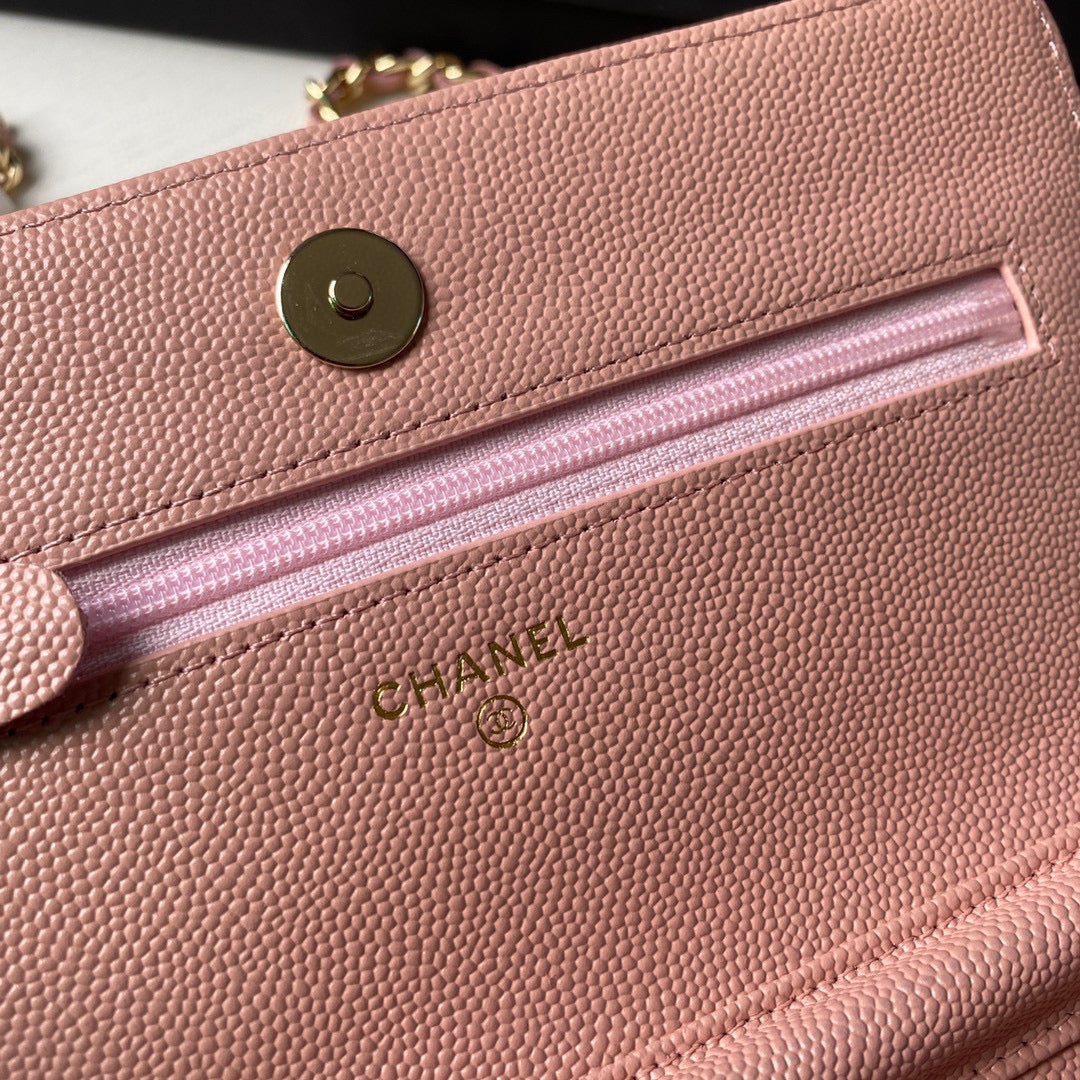 CN Classic Wallet on Chain Grained Shiny AP2742 Pink