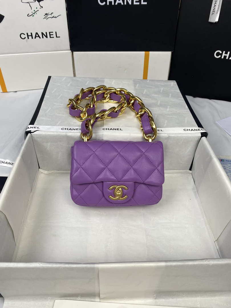 CN Mini Flap Bag Lambskin Gold-Tone Metal AS3213 Purple