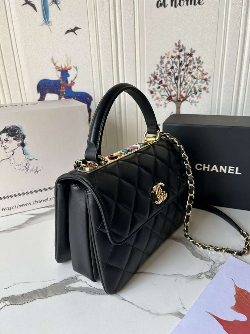 CN Trendy 24C Flap Bag With Top Handle Lambskin bag A92236 Black Multicolor Logo