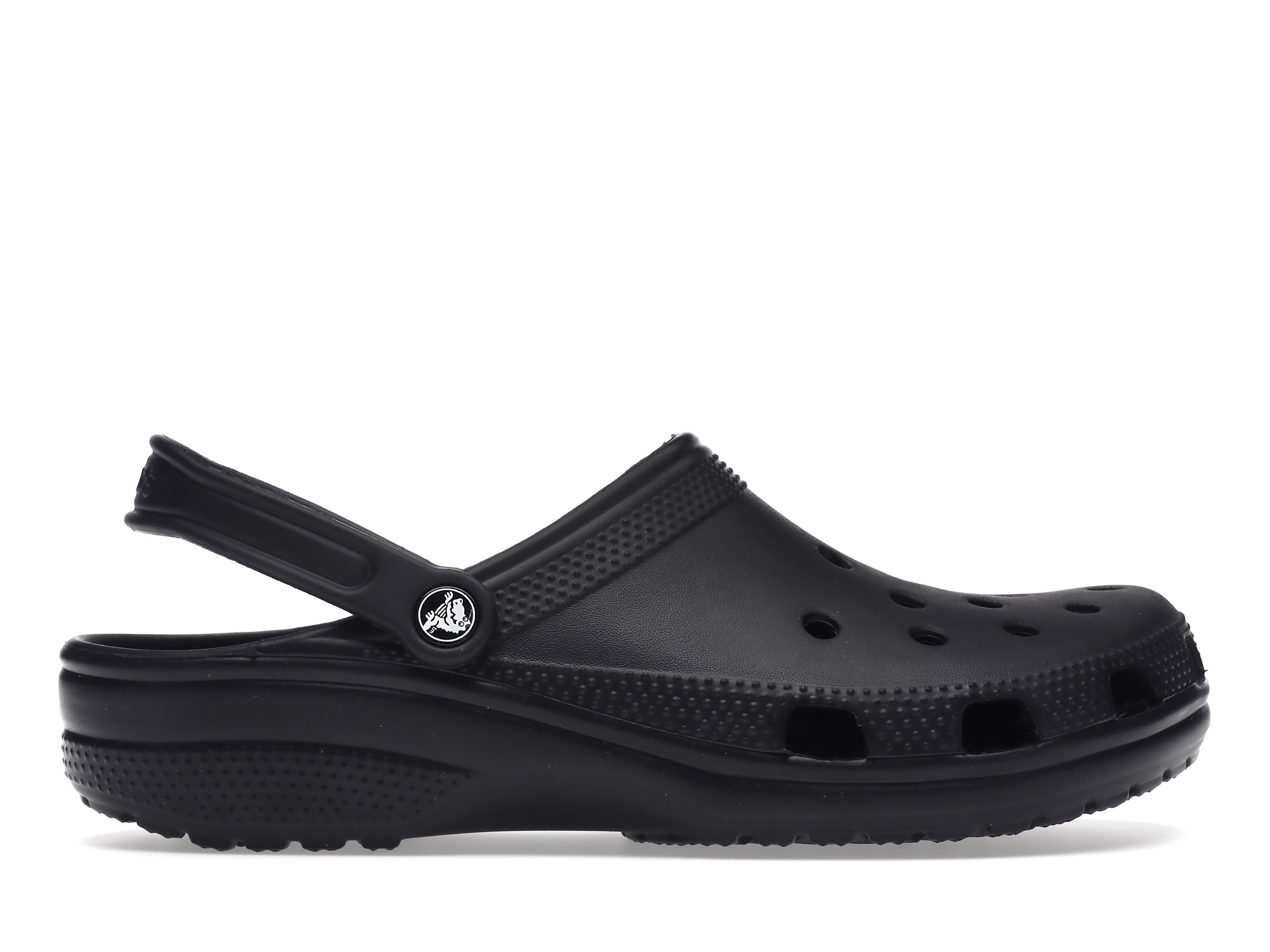 The Classic Clog is produced from croslite material covered in style code 10001BLK. This item is covered with a black colorway, with enough perforations at the Crocs’ upper and sides of the toes that help in the breathability as well as the drainage of excess water or sand from the inside of the Croc. The design features an extended heel strap for comfortability while in movement.