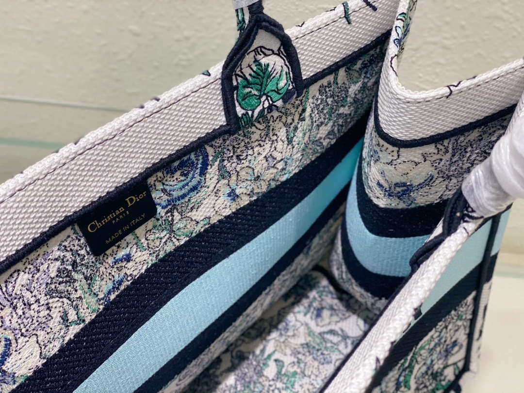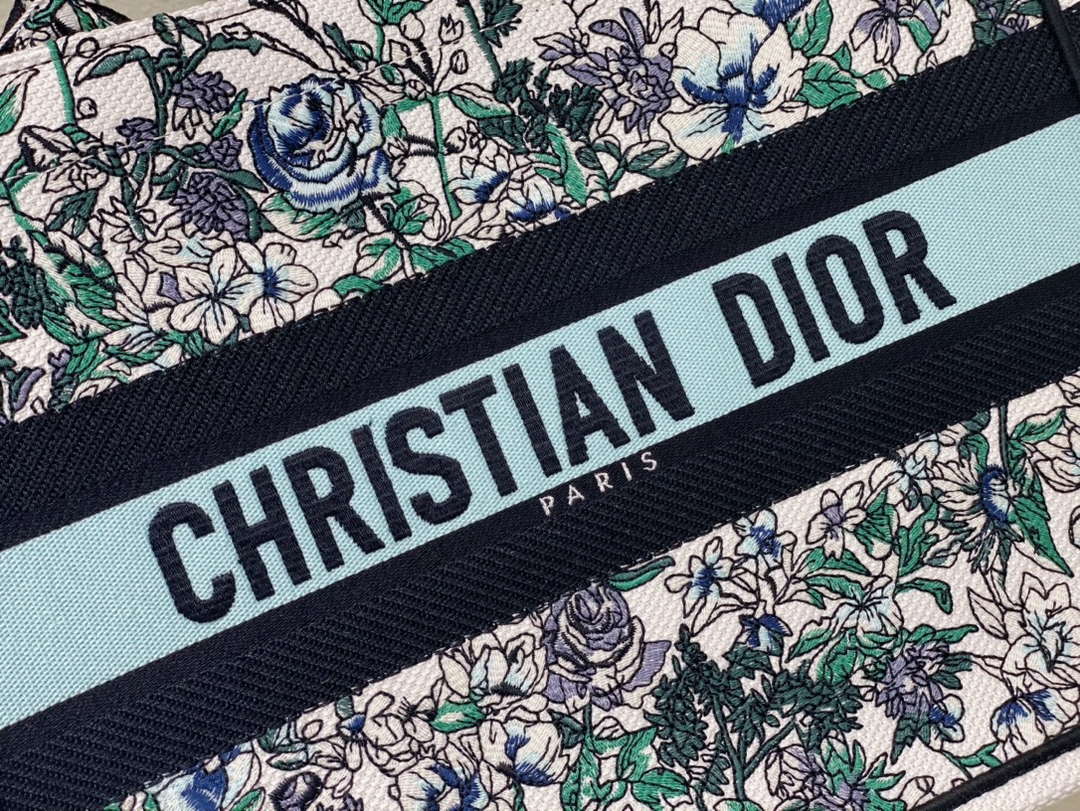 Introduced by Maria Grazia Chiuri, Creative Director of Christian D1or, the D1or Book Tote has become a staple of the D1or aesthetic. Designed to hold all the daily essentials, the style is fully embroidered with the ecru and blue D1or Oblique motif. Adorned with the Christian D1or Paris signature on the front, the medium tote exemplifies the House’s signature savoir-faire and may be carried by hand or worn over the shoulder.