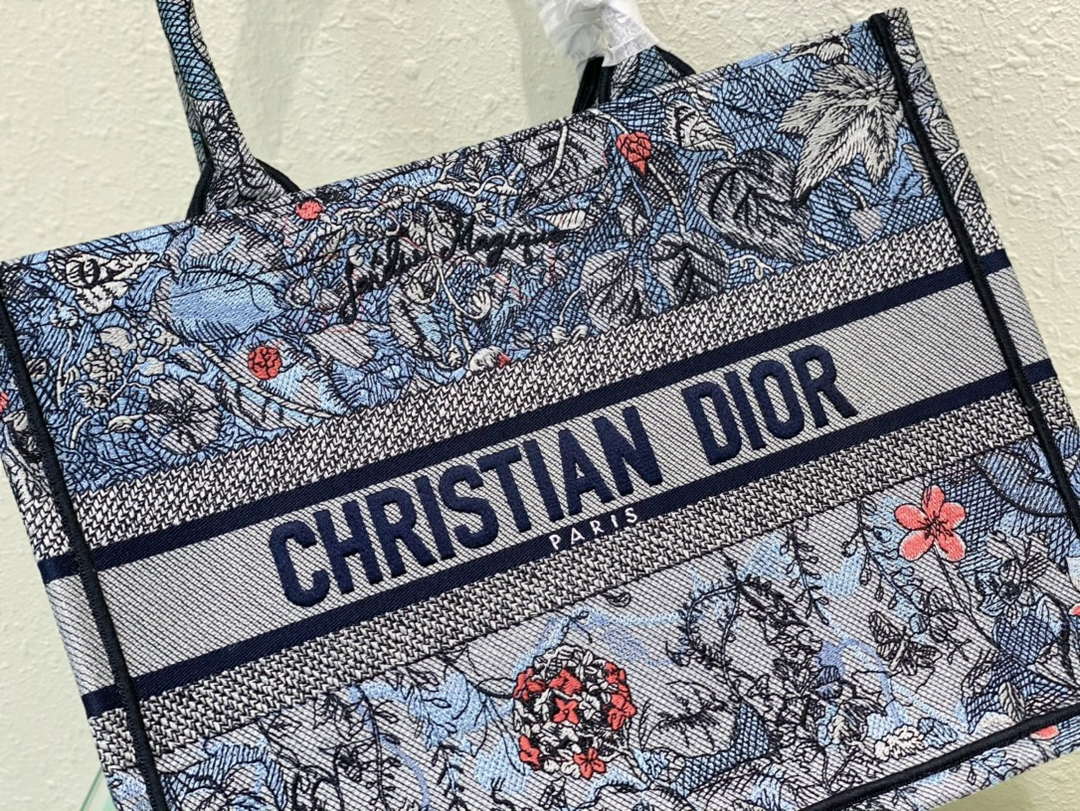 Introduced by Maria Grazia Chiuri, Creative Director of Christian D1or, the D1or Book Tote has become a staple of the D1or aesthetic. Designed to hold all the daily essentials, the style is fully embroidered with the ecru and blue D1or Oblique motif. Adorned with the Christian D1or Paris signature on the front, the medium tote exemplifies the House’s signature savoir-faire and may be carried by hand or worn over the shoulder.