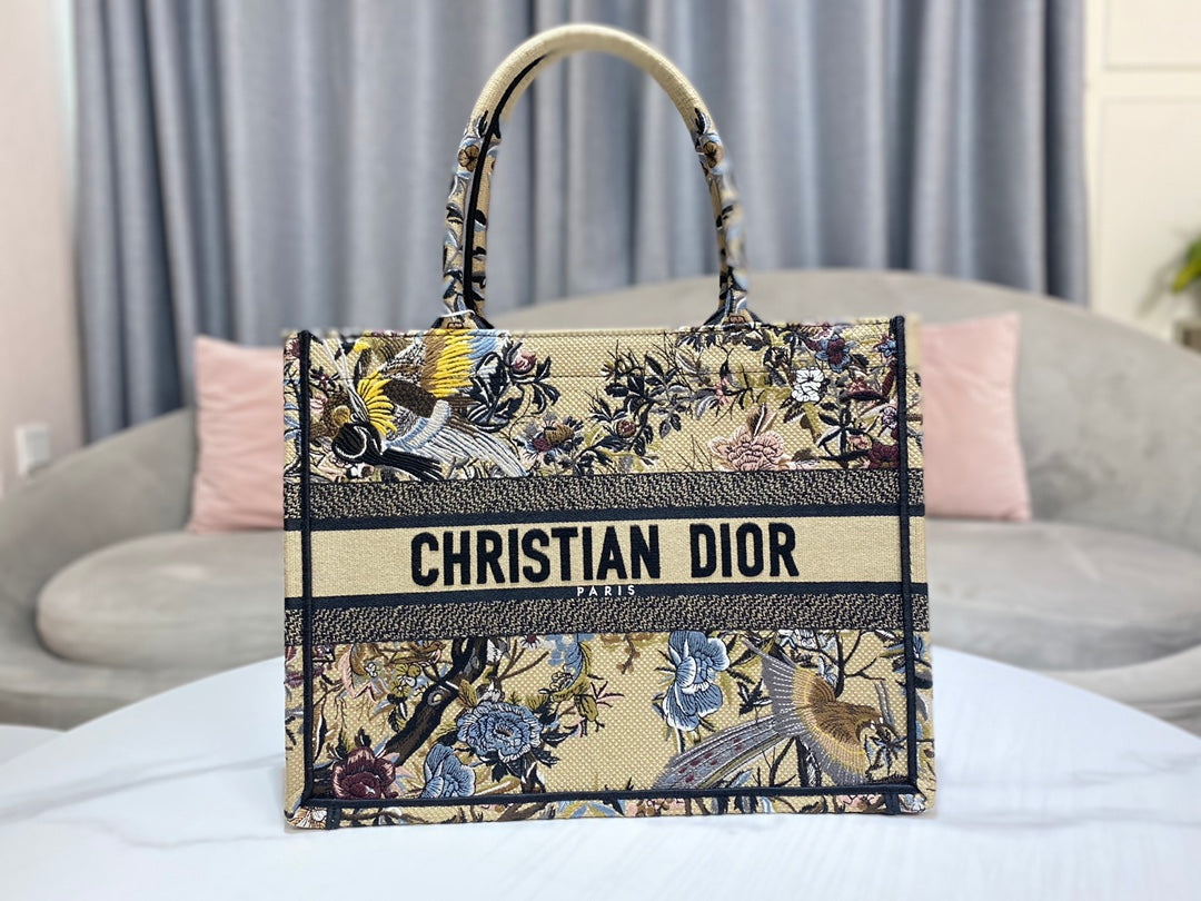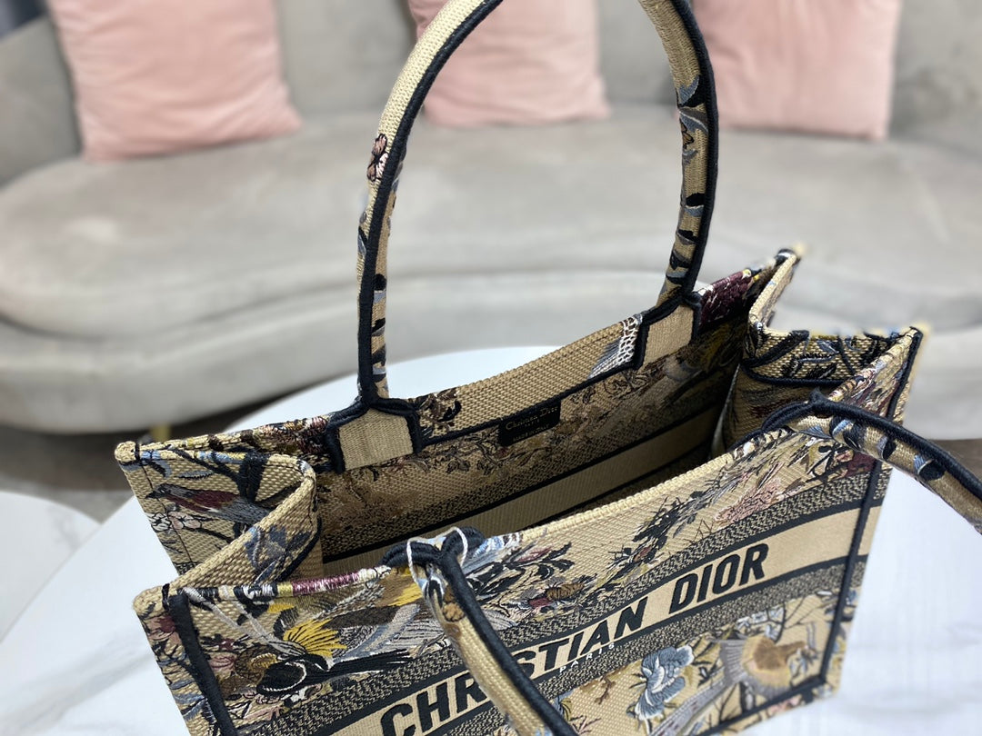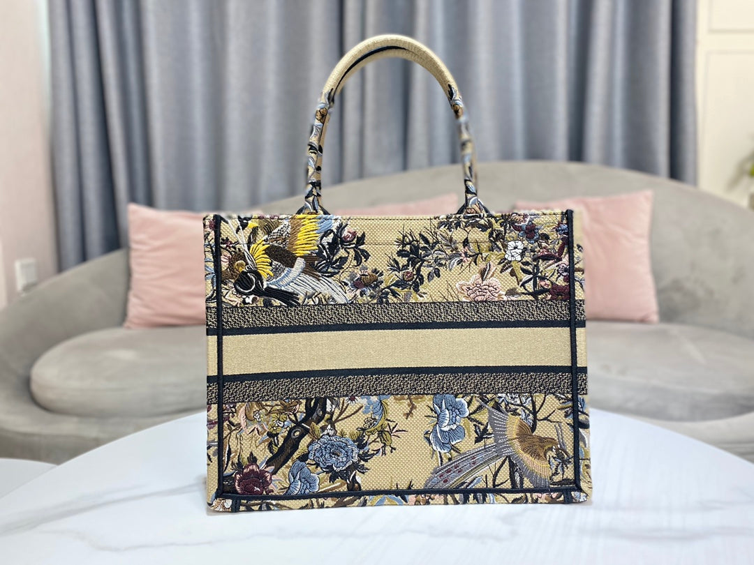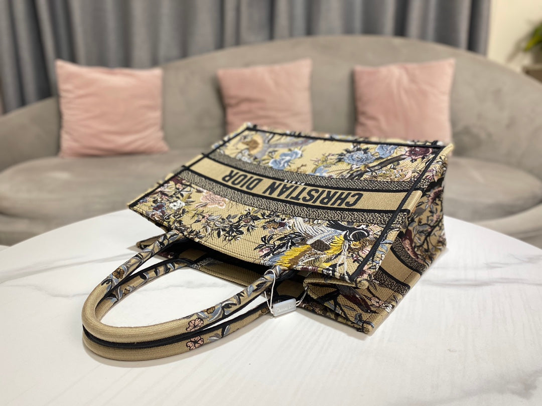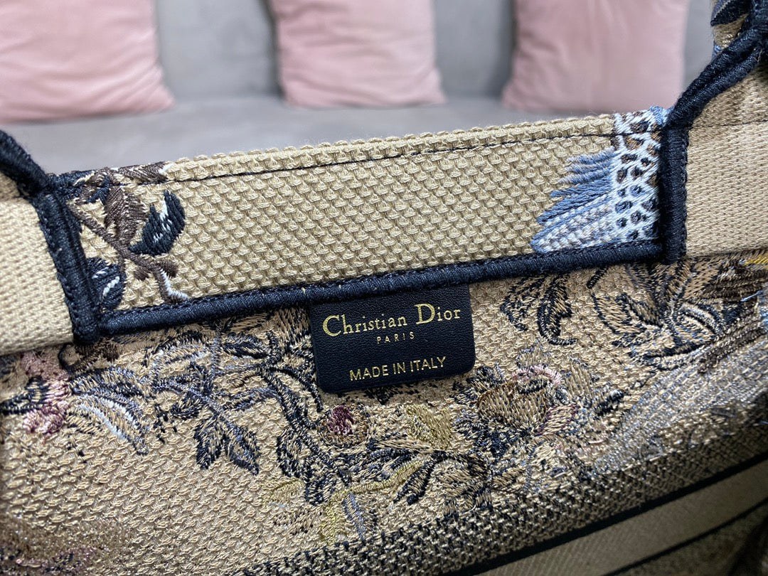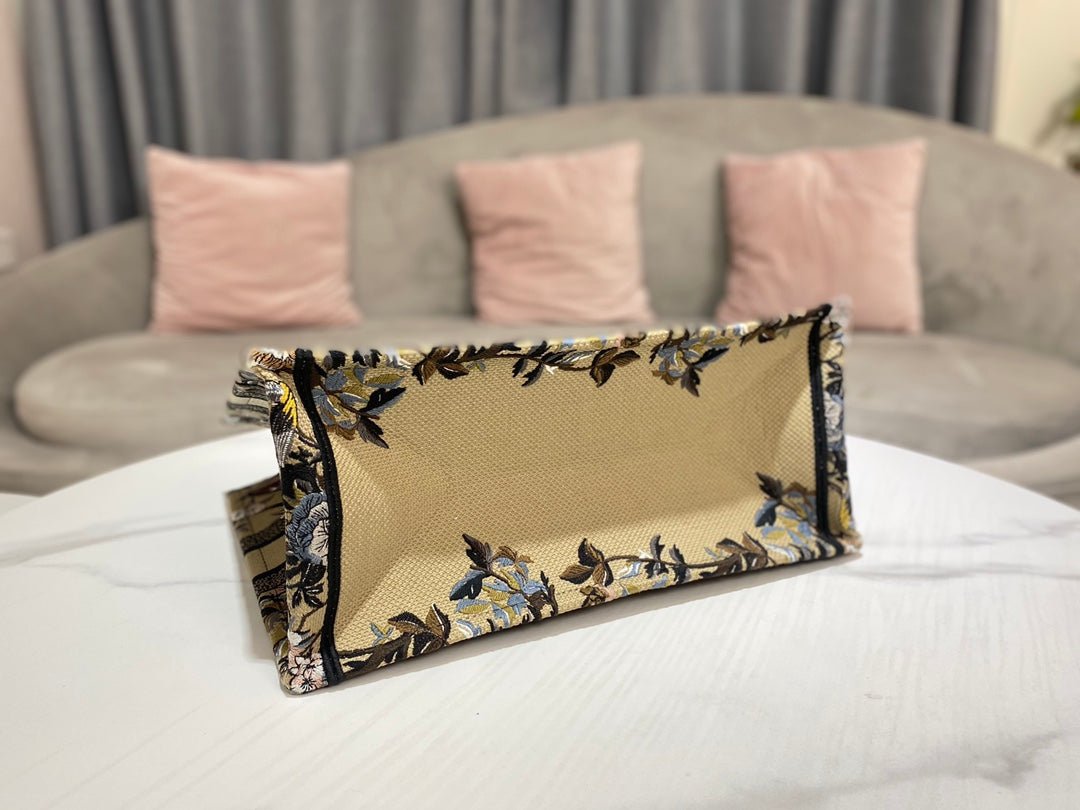 D1or Book Tote M1296 Medium Latte Multicolor D1or Jardin d’Hiver Embroidery M0090