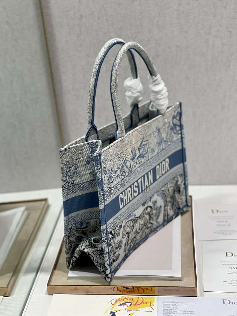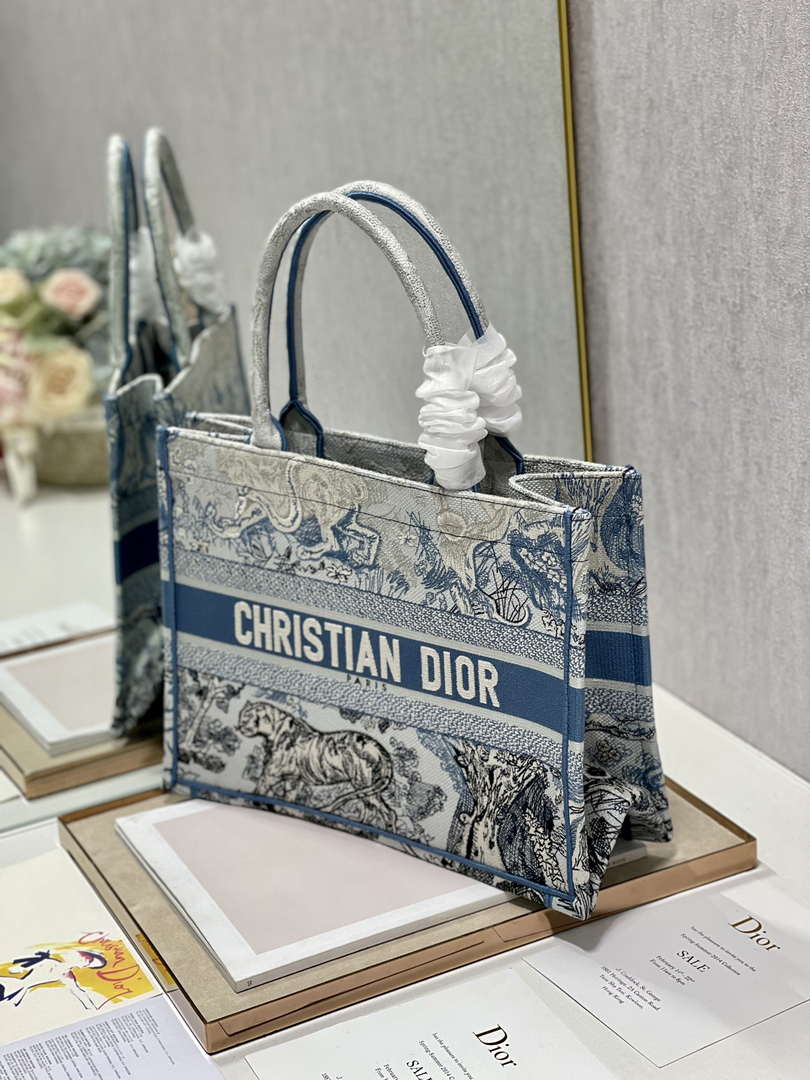 D1or Book Tote M1296 Medium Toile de Jouy Embroidery M0075