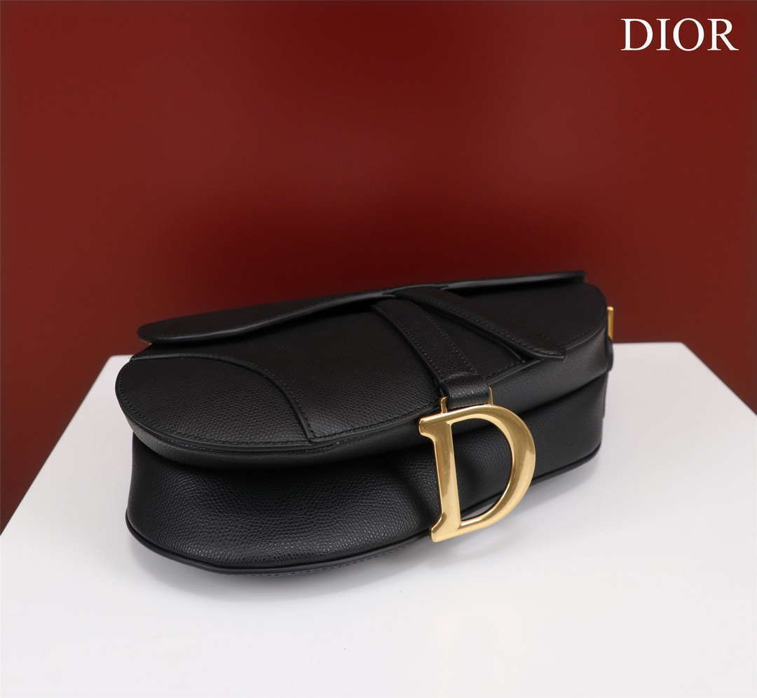 D1or M0456 Mini Saddle Bag With Strap Black Grained Calfskin