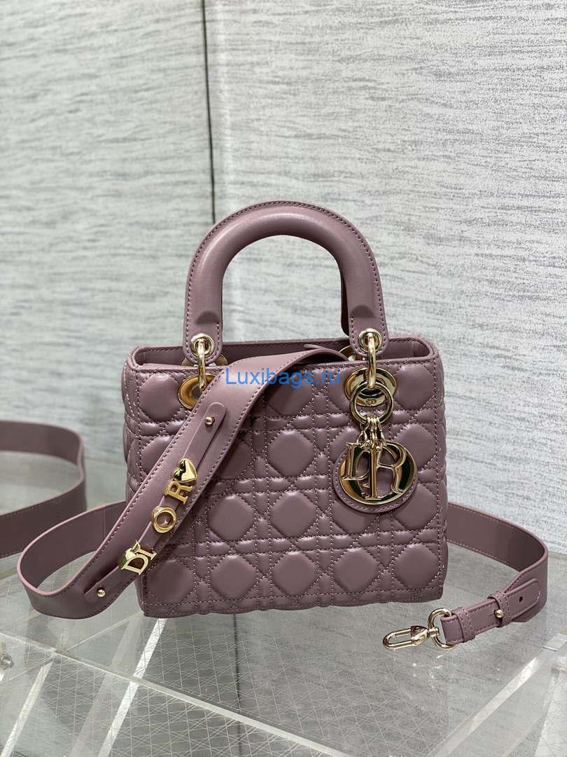 D1or M0538 Small Lady My ABCD1or Bag Peony pink Cannage Lambskin