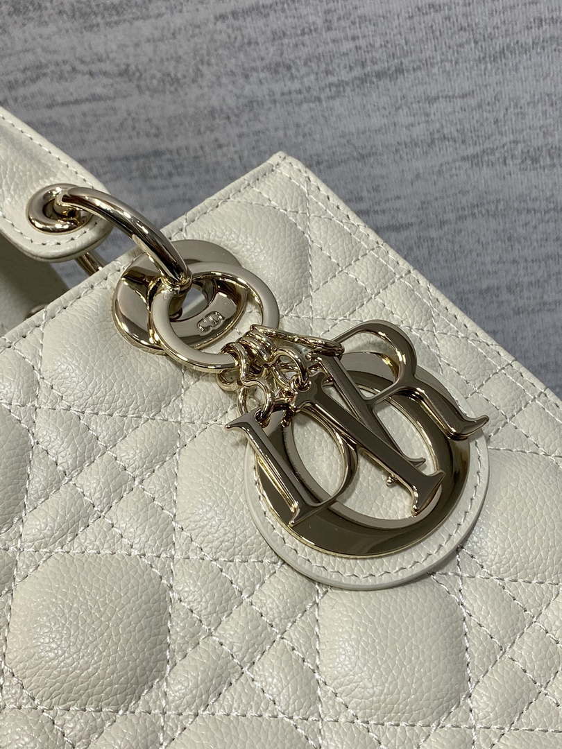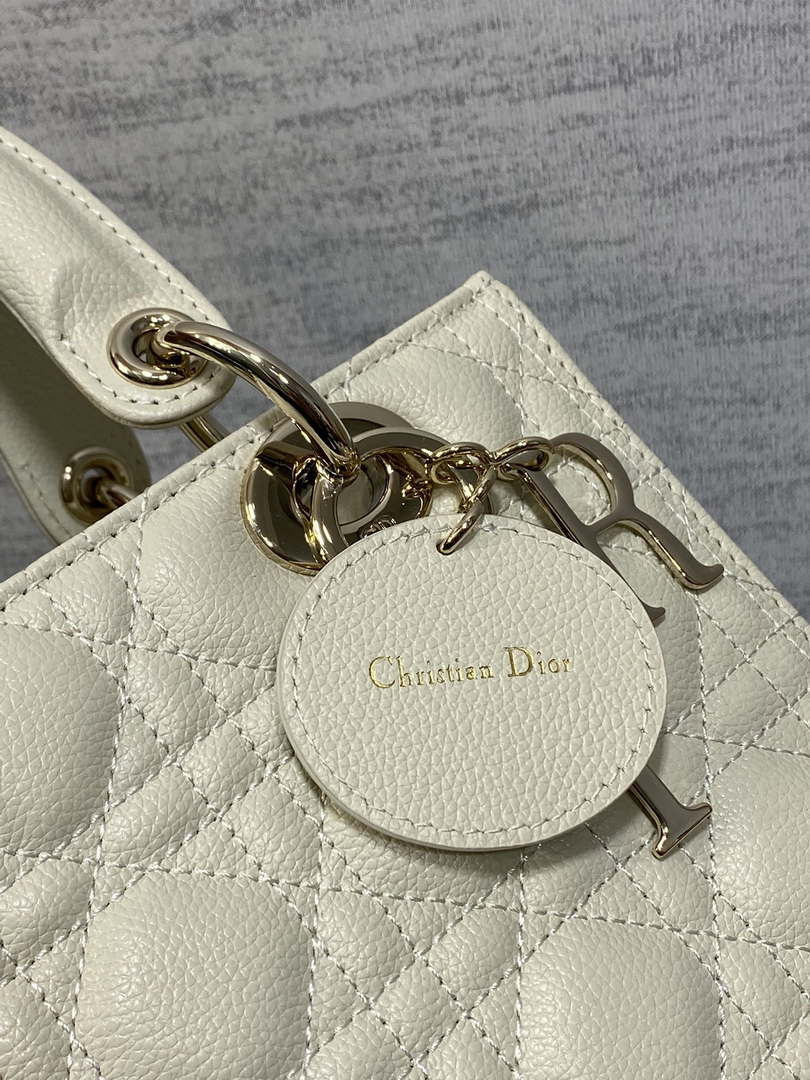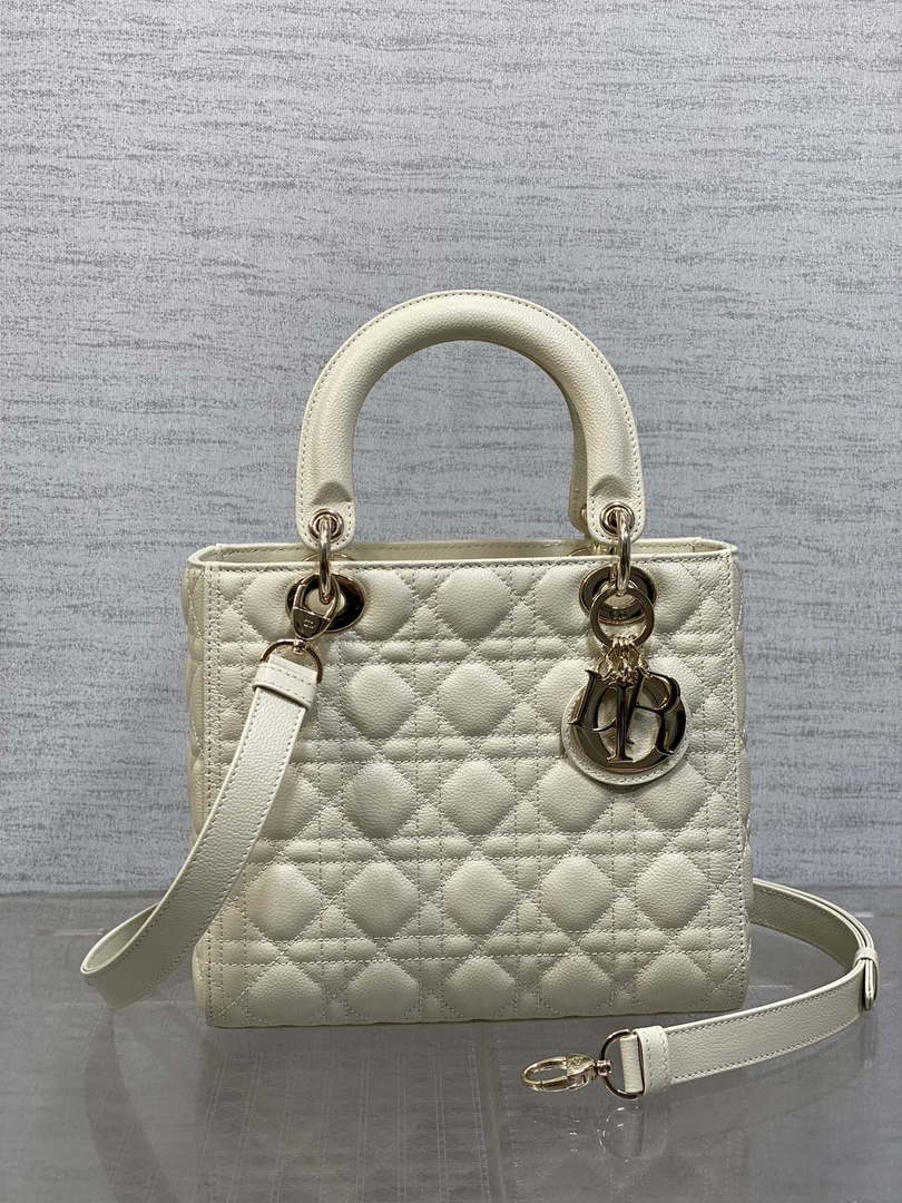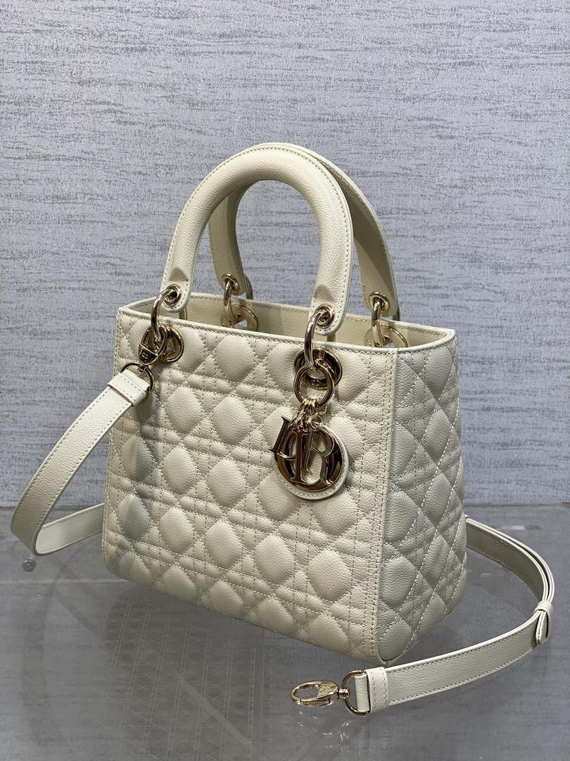 D1or M0565 Medium Lady D1or Bag Beige Grained Cannage Calfskin Gold