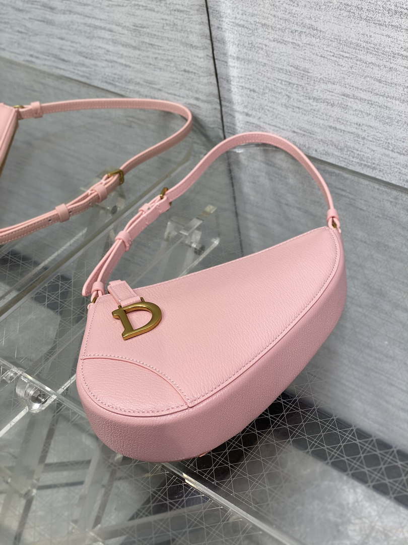 D1or M05909 Saddle Shoulder Pouch Melocoton Pink Goatskin