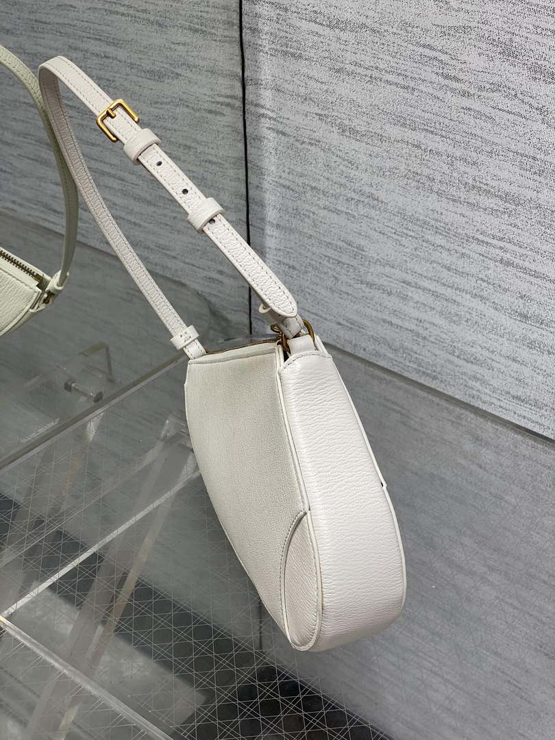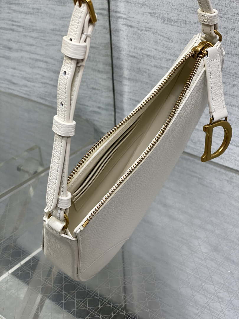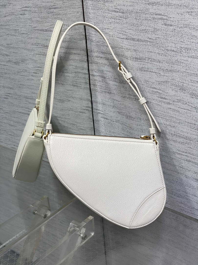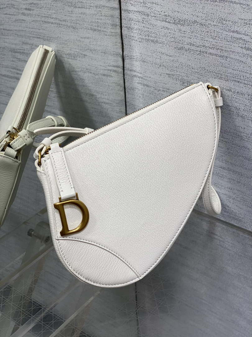 D1or M05909 Saddle Shoulder Pouch White Goatskin