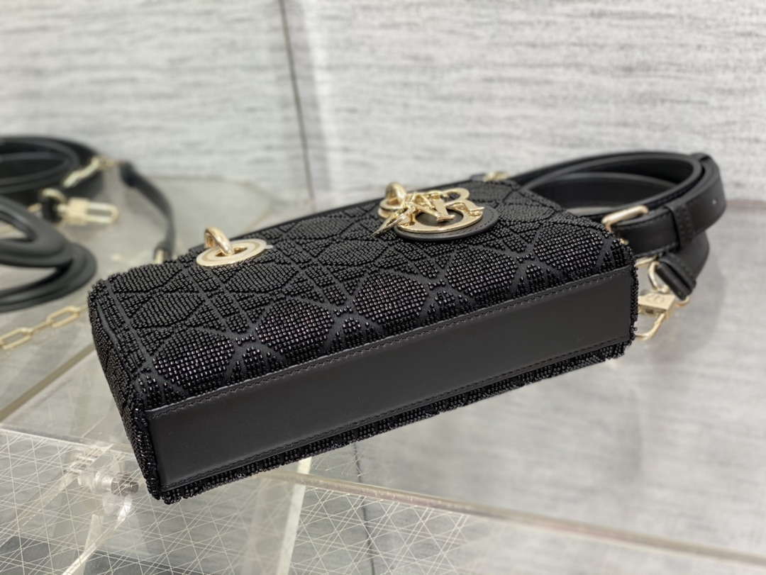 D1or M0613 Small Lady D-joy Bag Cannage Lambskin Limited Edition Heavy Industry Beads Black