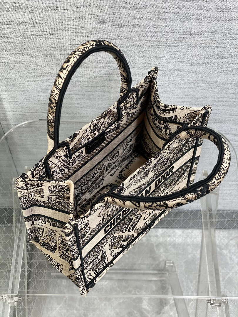 D1or M1265 Small Book Tote Tan and Black Plan de Paris Embroidery M9617