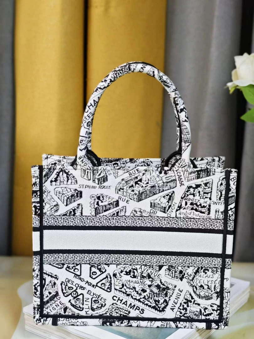 D1or M1265 Small Book Tote White and Black Plan de Paris Embroidery M9616