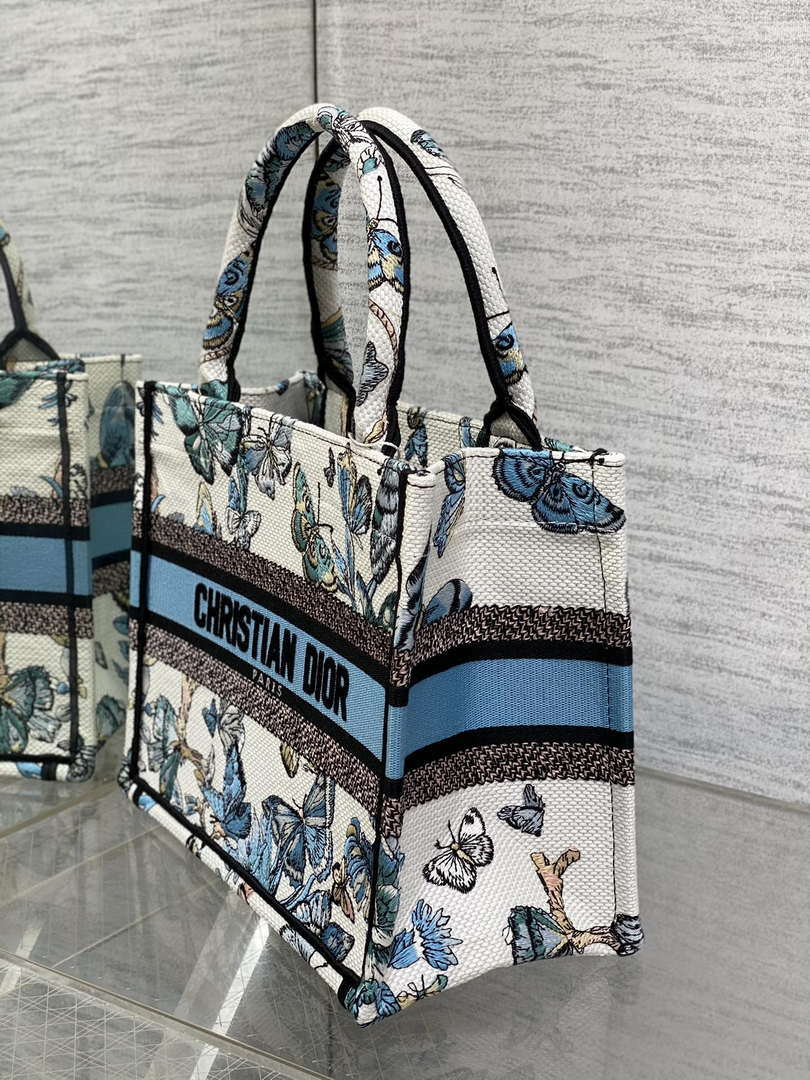 D1or M1265 Small Book Tote White and Pastel Midnight Blue Toile de Jouy Mexico Embroidery