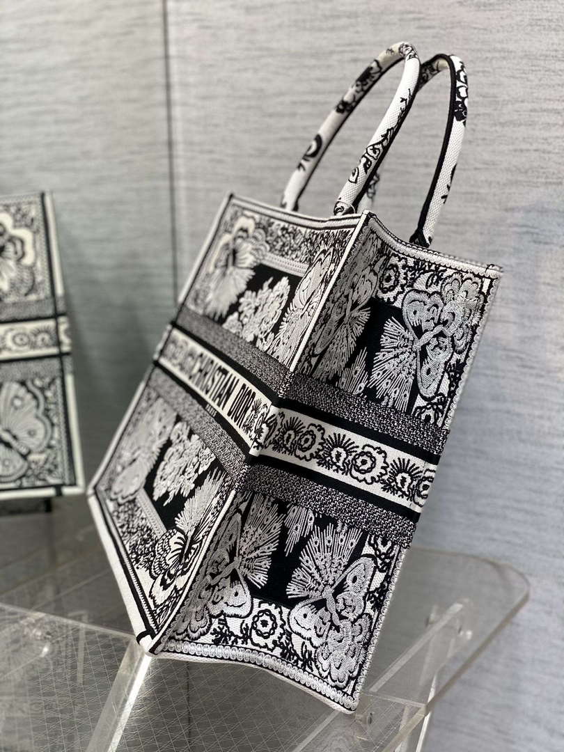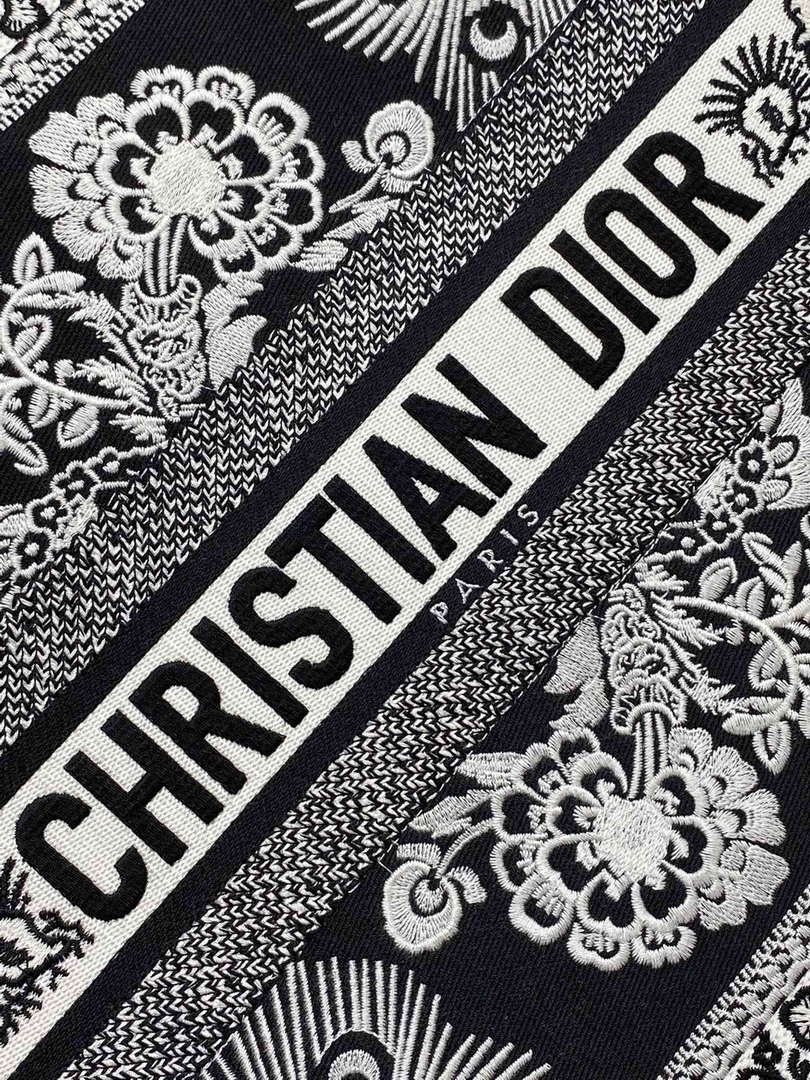 Designed by D1or creative director Maria Grazia Chiuri, the original D1or Book Tote bag is an important part of the fashion house’s aesthetic concept. Fitted with everything you need, this model is embroidered all over with a golden D1or Around the World Stella motif by artist Pietro Ruffo. This motif embodies two D1or symbols: Toile de Jouy and “CHRISTIAN DIOR PARIS” lettering on the front. Carried in the hand or on the shoulder, this oversized tote is the epitome of the maison’s craftsmanship.