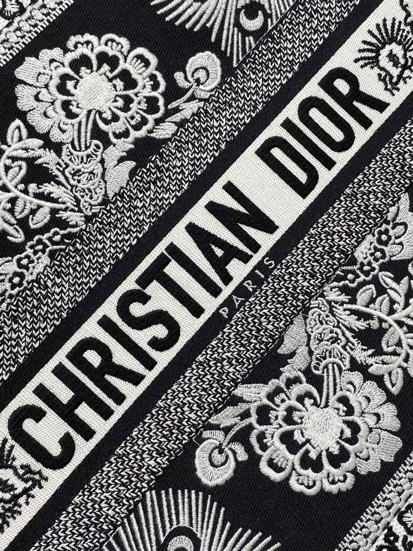 Designed by D1or creative director Maria Grazia Chiuri, the original D1or Book Tote bag is an important part of the fashion house’s aesthetic concept. Fitted with everything you need, this model is embroidered all over with a golden D1or Around the World Stella motif by artist Pietro Ruffo. This motif embodies two D1or symbols: Toile de Jouy and “CHRISTIAN DIOR PARIS” lettering on the front. Carried in the hand or on the shoulder, this oversized tote is the epitome of the maison’s craftsmanship.
